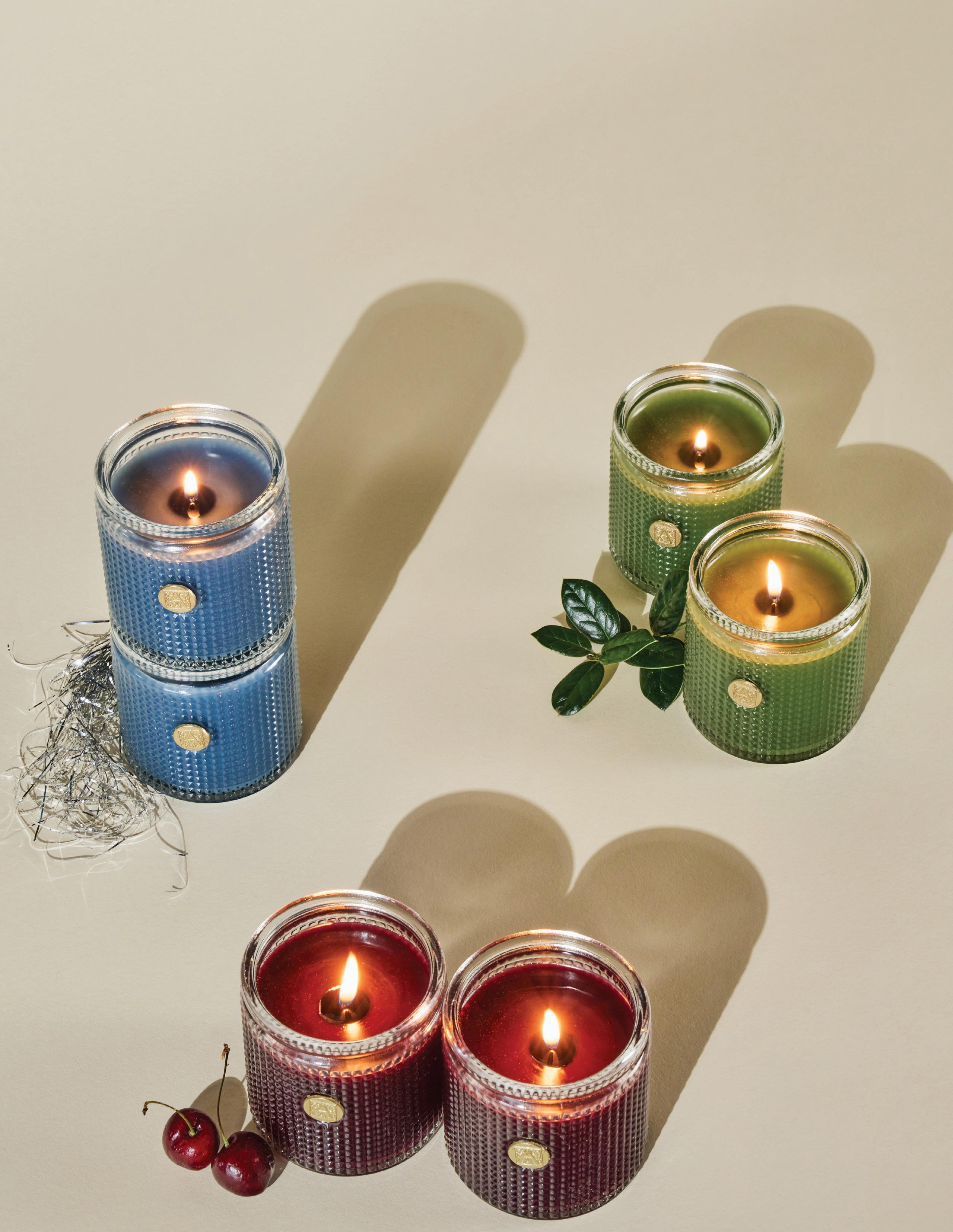 Our assortment of captivating fragrances that welcome you home, essential to your embrace of everyday comforts. Available in our bestselling Textured Glass Candle!