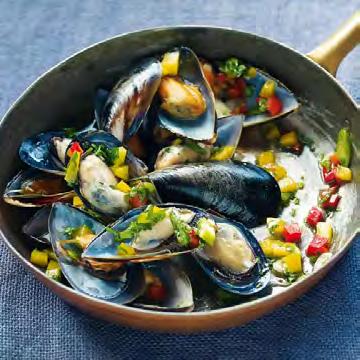 BeidenMiesmuschelnmitPaprika-Vinaigrette kanneinleichterfruchtigerRotweinohneGerbstoff,wieeinZweigeltoderGameyrichtigSpaß machen.Weißweinfansdagegenfindenineinem RieslingKabinettdenbestenSparringspartner.
