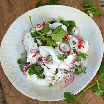 BeieinerCeviche,wiesieinPeruserviertwird, benötigteseinenfruchtigen,vielschichtigen Weinbegleiter,dennhiertrifftnichtnurLimette sonderauchChiliimGaumenaufdenWein.Gut dazueinfränkischerSilvanerodereinleichter RoséausderProvence.Aucheinehercremiger Weißburgunder,oderklassischausgebauterchilenischerChardonnay–ohneBarrique–können dasCevichehändeln.WennmandieChilisparsameinsetzt,sindeinSauvignonBlanc,einen GrünenVeltlinerodereinVerdejo-Verduraaus RuedaeinespannendeAlternative.WerChenin Blancliebt,kanneinensüdafrikanischenVertreter miteinemAnteilViognierdazuöffnen–ebenfalls eineTop-Kombination.Grundsätzlichsollteman beiderWeinpaarungaufdasCeviche-Rezept achten,dennjenachdemmitwelchemFisches zubereitetwird,verändertdasauchdieWahl desWeines.