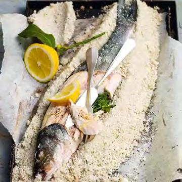 ZuedlenFischenmitdelikatemAromaundfesteremFleischwieWolfsbarsch,derinderSalzkrustezubereitetwird,entfaltensichdiebeigefügtenKräuteraromenbesondersgut.AlsBeilage passenfrischangemachterBlattsalatmitgehobel-