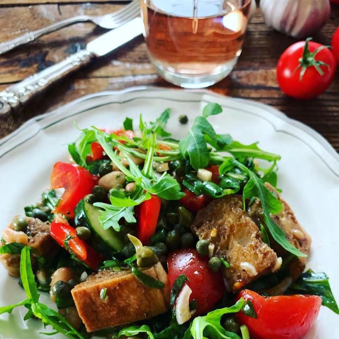 ImSommergibteskaumetwas,wasichlieber essealseinenfrischenSalat–undPanzanella stehtbeimirganzobenaufderListe!Ihrwerdet begeistertsein,wennihrmeinRezeptausprobiert.DennmitkleinenKapern,weißenBohnen undSardelleninderVinaigrettezaubereichein StückItalienaufdenTisch!