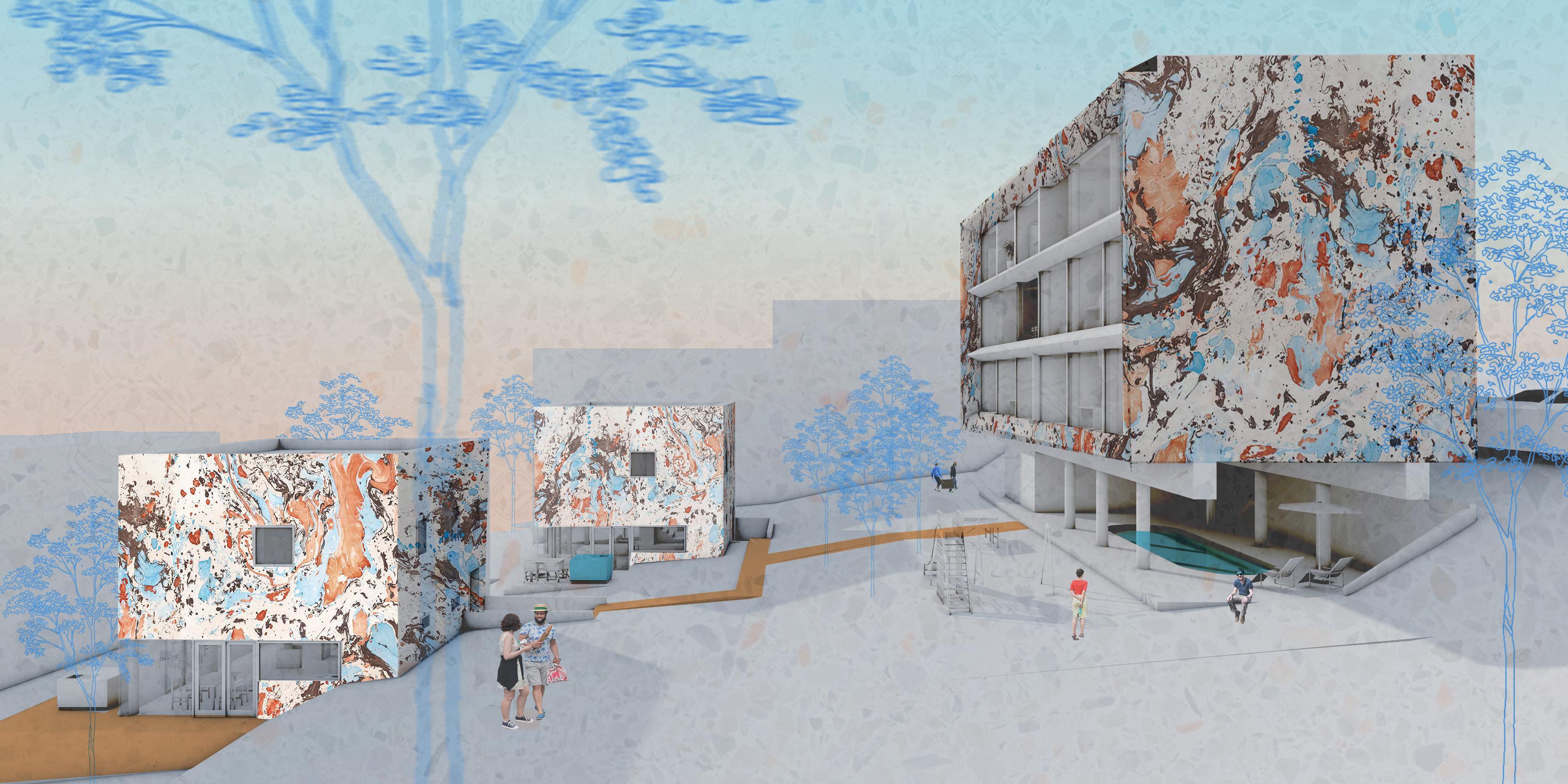 elhelyezni egy tömbben. Alatta apró, szabadon álló kétszintes lakásokat elhelyezni