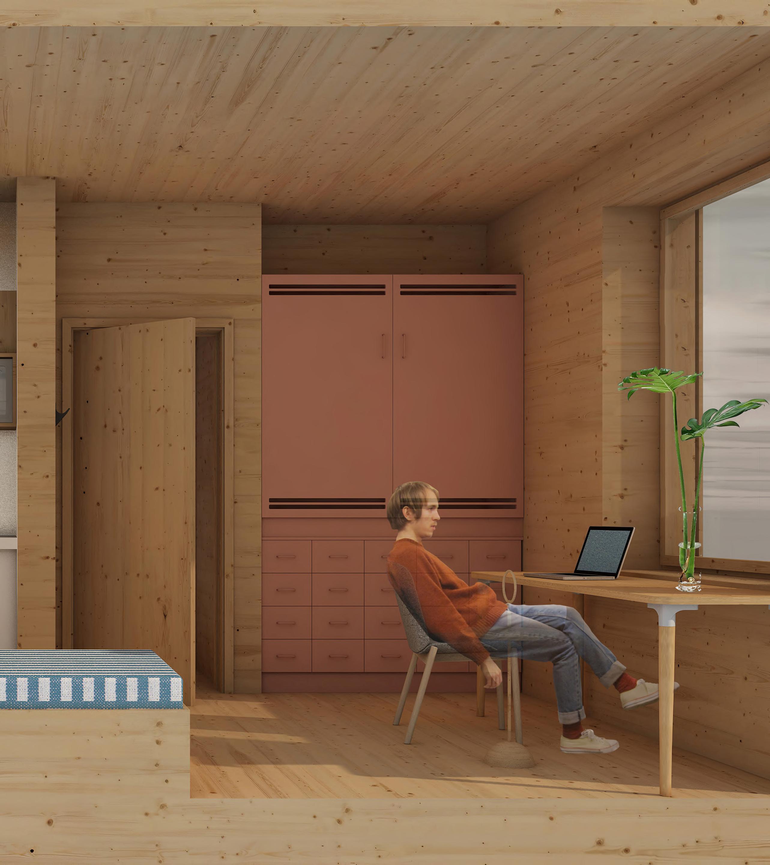 lépcs ők kubusaival létrejövő zugok segítenek a kültéri közösségi élet kialakulását, ami aztán az egyetemisták saját tárgyaival teljesedik ki.