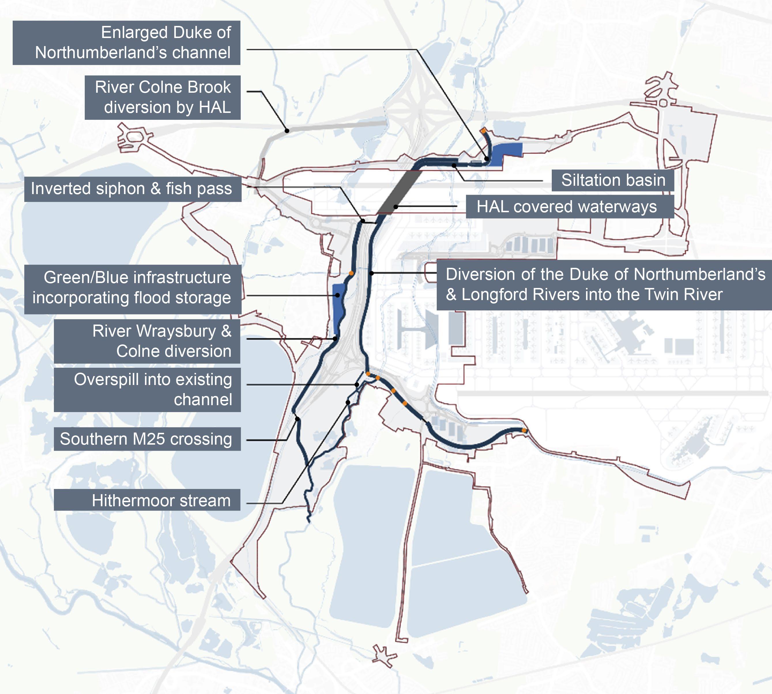 • Reducing engineering complexity, construction risk, and consumer cost by avoiding the need to construct the Northwest Runway over the M25