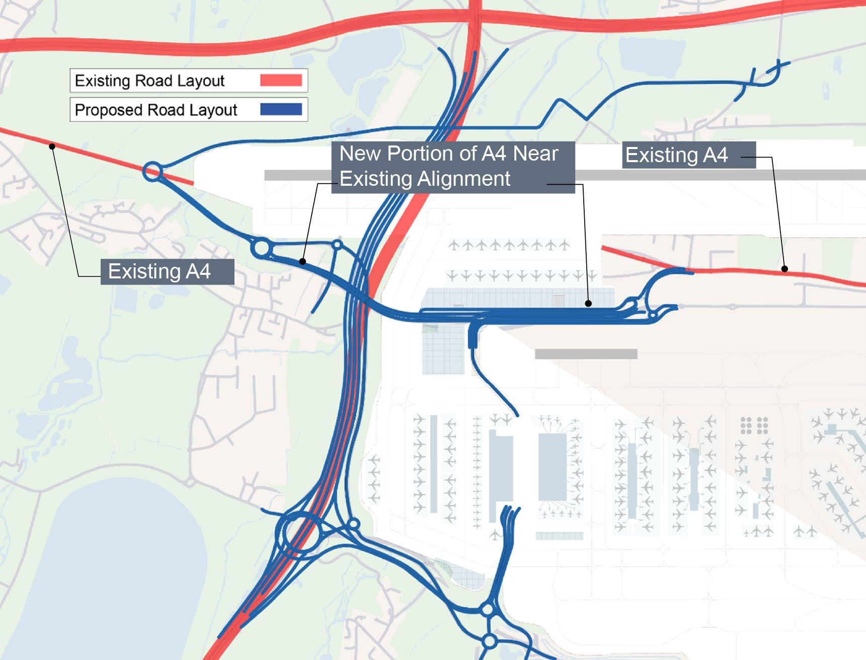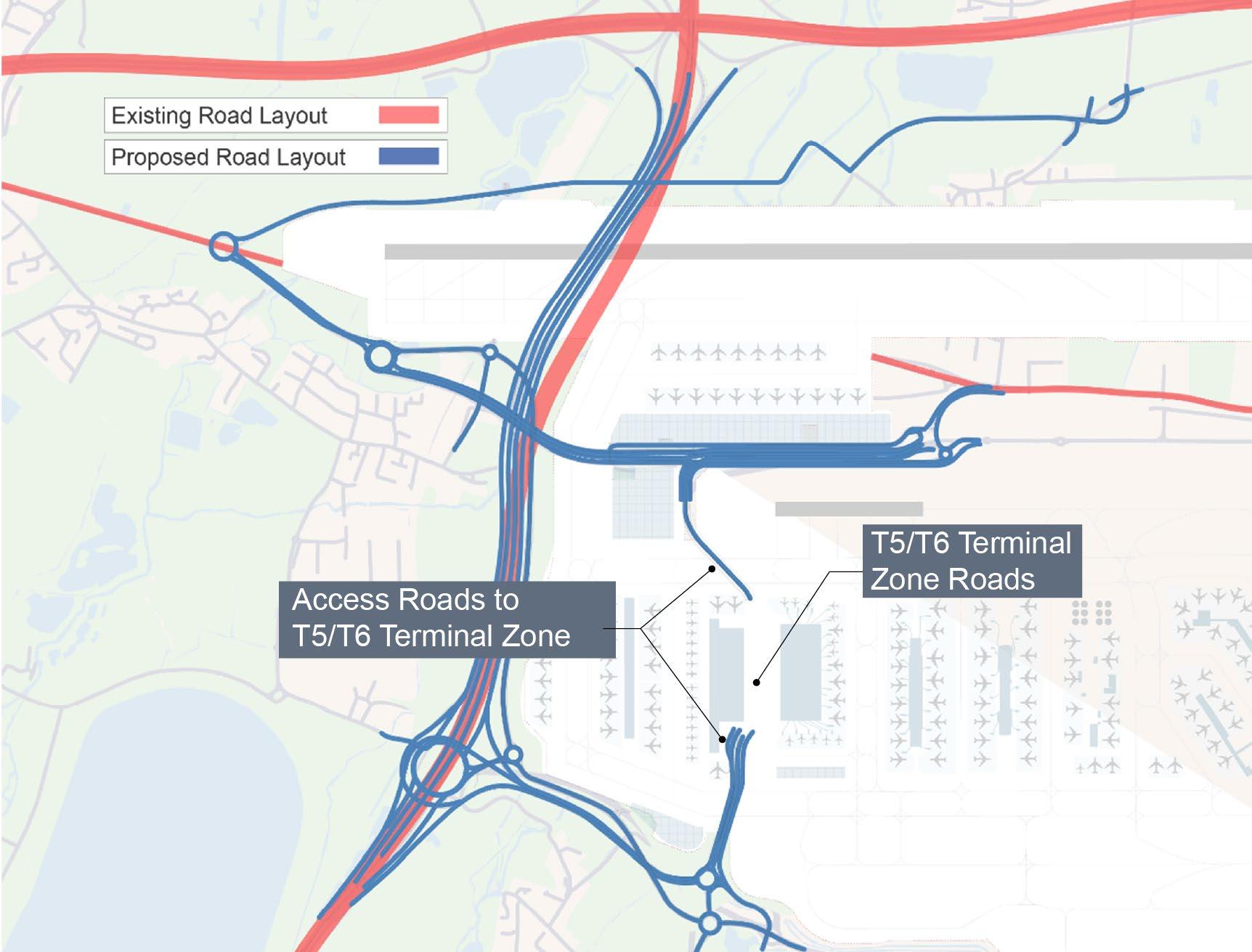 • surface access improvements, including re-aligned public roads for access to T5 and T6 and for maintenance of local connectivity, new multi-storey car parks and additional active travel routes