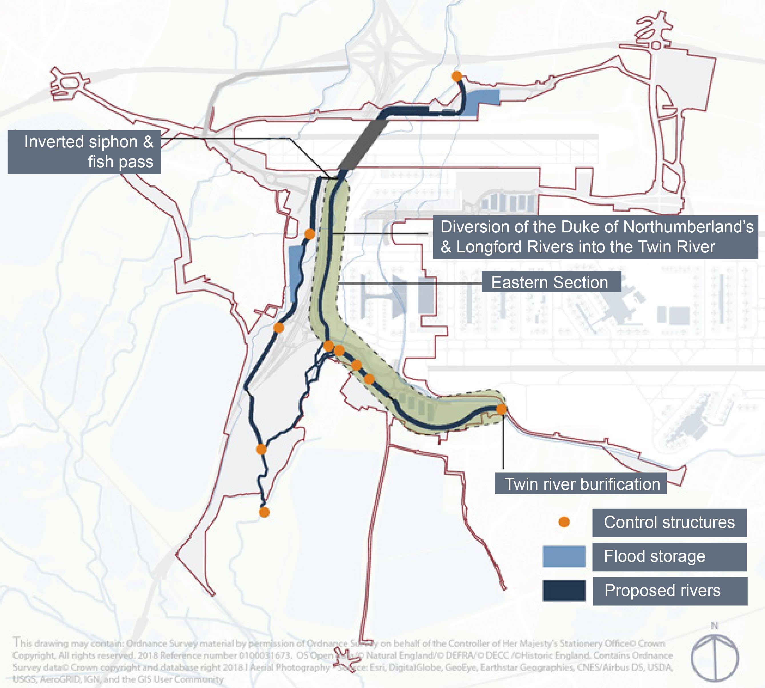 • river diversions, to clear the project site and for ecological and flood prevention enhancements