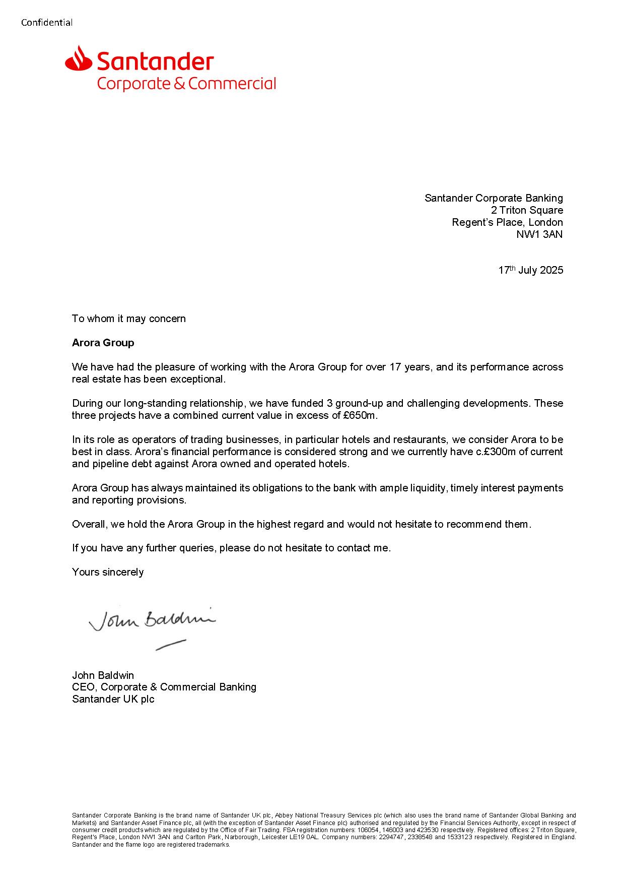 Letter from John Baldwin, CEO of Corporate and Commercial Banking –Santander UK plc
