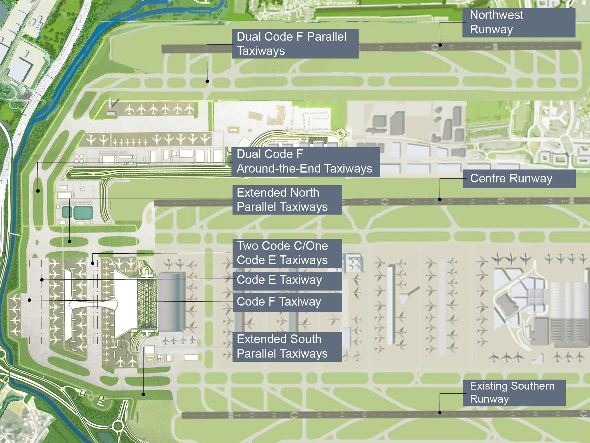 • a new 2,800m Northwest Runway, together with supporting taxiways and aircraft parking aprons