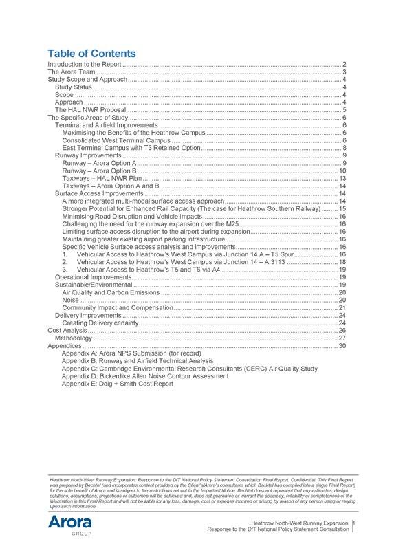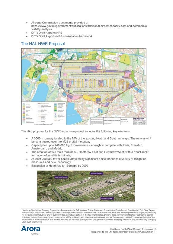 Heathrow West: Proposal for the Expansion of Heathrow Airport Final Report. Confidential. This Final Report was prepared by Bechtel (and incorporates content provided by consultants of The Arora Group (Arora) which Bechtel has compiled into a single Final Report for the sole benefit of Arora and is subject to the restrictions set out in the Important Notice in Appendix J of this report
