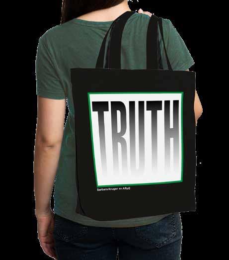 Budskabet passer til Barbara Krugers værker – som du kan læse mere om på side 22–25 – og som blandt andet behandler den enorme mængde tid, vi bruger online, og hvordan deling af billeder og kommercielle budskaber påvirker vores verdenssyn. Kig op – fra din telefon eller digitale device og tag stilling til verden omkring.