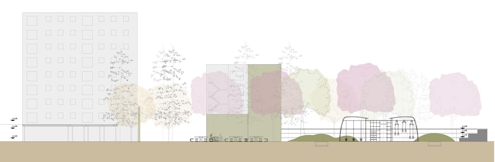 Pere IV, ubicado en la ciudad de Barcelona, es una de las pocas manzanas dentro de la ciudad que no sigue la forma designada por Cerdá al hacer su afamada retícula. Hoy, se encuentra abandonada, fungiendo como estacionamiento. Al estar en una de los barrios con mayor crecimiento, el Poblenou, tiene un gran potencial para operar no solo como un lugar para parking, si no, podría convertirse en un parque público para la zona. El proyecto plantea un programa para crear espacios verdes, así como, un área de juegos infantiles para la escuela aledaña, una cancha multi-usos. espacios para picnic y un área designada a la recolección de productos reciclables. De igual forma, se mantiene toda la vegetación existente, y se complementa esta con más especies para crear un oasis verde dentro de la ciudad. Buscando que sea un proyecto sustentable, vía topografía, se crean captaciones de agua pluvial para poder alimentar el propio parque.
