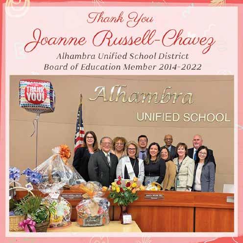 Joanne Russell-Chavez, surrounded by members of AUSD’s executive cabinet and her fellow Board of Education members, concluded her second term of o ce. She called her time on the board “one of my greatest journeys.”