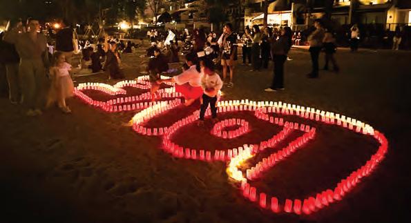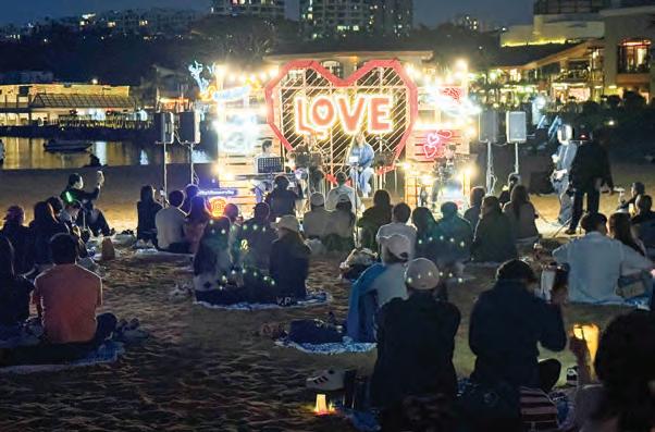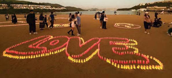 Tai Pak Beach transformed into the perfect setting for a romantic photo op on February 14 with over 7,000 LED candles arranged to form a galaxy of hearts. Live music was provided by local buskers The Flame. [PHOTOS BY Claire Al-Halabi.]