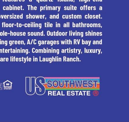 3 BEDROOMS, 2 BATHROOMS 2 ARIZONA ROOMS, ATTACHED STORAGE AND WORKSHOP, NEWER CABINETS AND COUNTERTOPS THROUGHOUT, NEWER STAINLESS STEEL APPLIANCES, NEWER FIXTURES, WALK IN PANTRY, WALK IN SHOWER, UPGRADED FLOORING AND CARPETS THROUGHOUT, NEWLY PAINTED INSIDE AND OUT, COVERED PATIO, COVERED PARKING, FULLY FURNISHED AND MOVE IN READY. LAUGHLIN, NV.