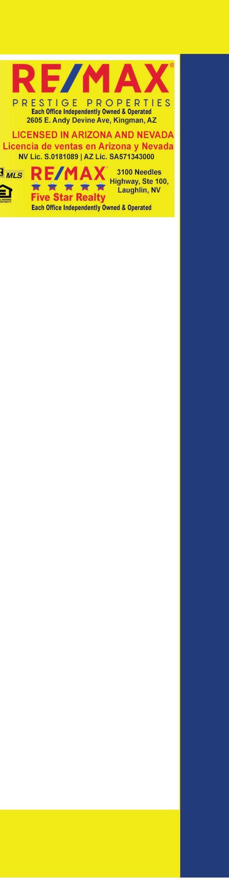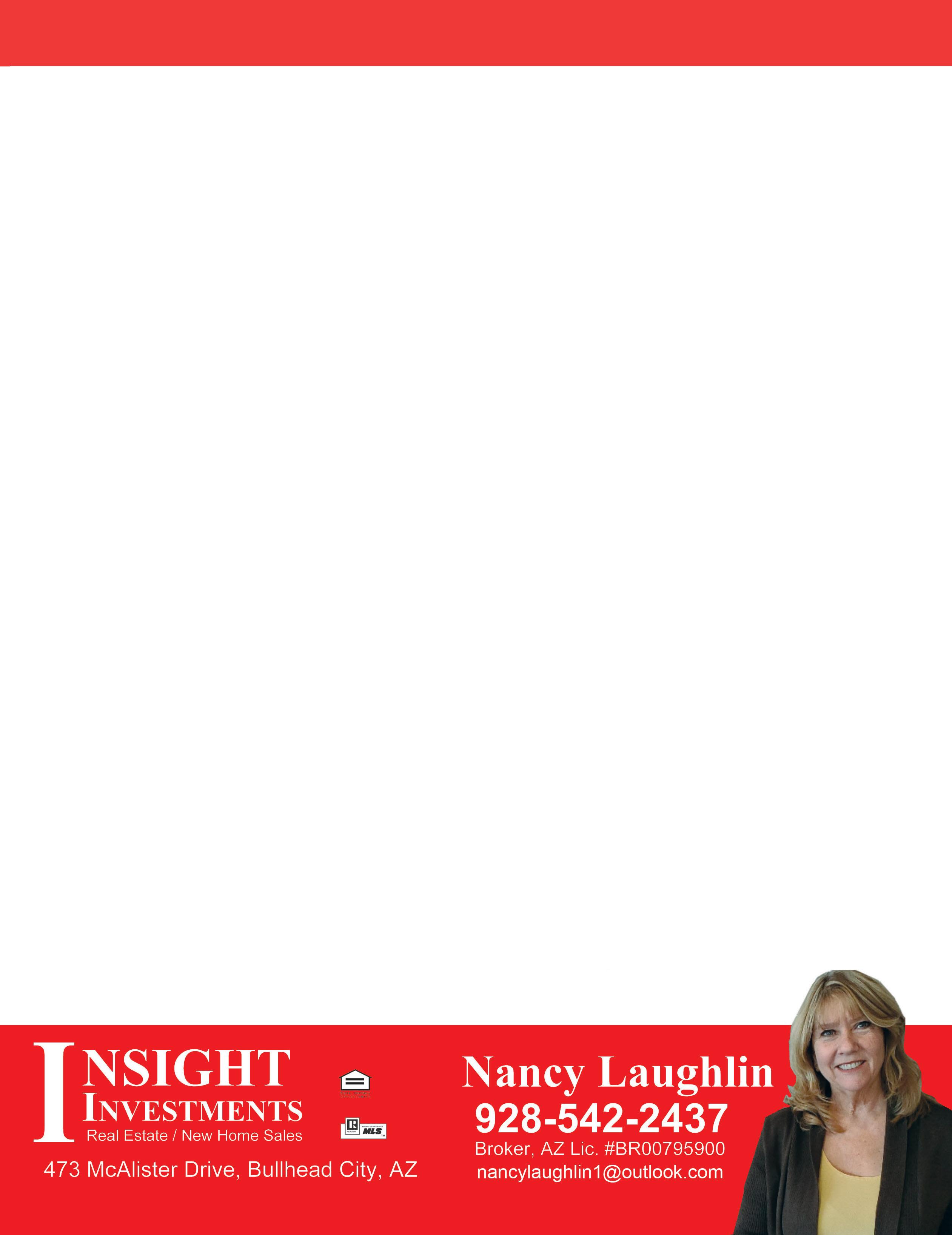 4792 POWELL LAKE ROAD, TOPOCK Furnished. Move-in ready 3 bed 2 bath, site-built home on just over a quarter acre lot. Great location and unobstructed views. Truly a blank slate. 30x25 garage. MLS #029539 $370,000