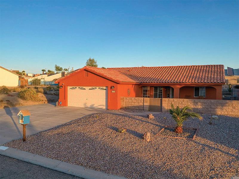 Mohave Valley - Detached RV garage and separate detached 2 car garage. RV full hook up slab on property. Upgrades include fooring, custom painting inside and out, hardware, new appliances, Windows fans, leveling 2025, new water system and furnace. Kitchen with casual dining including granite countertops and new appliances. 3 covered patios to enjoy. Split foor plan and Utility room. This home is fully gated with a welcoming Horseshoe cemented driveway. New rock has been added for front yard landscaping. #029420 $459,000