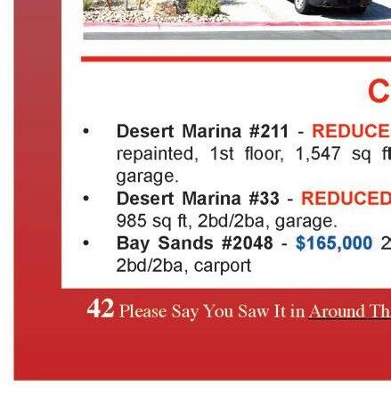 OWNER WILL CARRY! If Location is Everything, this is it! Wonderful views of the palm trees, mountain views and one of the pools with water feature. Fully remodeled in 2023, kitchen was taken down to the studs, new “kraft maid” cabinets with pull out drawers and drawer inserts, all new appliances and granite counters. Fireplace. Floor to ceiling mirrors across the dining room wall. Even the garage got a new epoxy floor. Community is gated and has a marina and boat docks (docks can be purchased), 4 pools, 3 spas, and lots of landscaping. One owner for the past 30 years. Owner/agent. Seller will provide home warranty. MLS #027081 $250,000