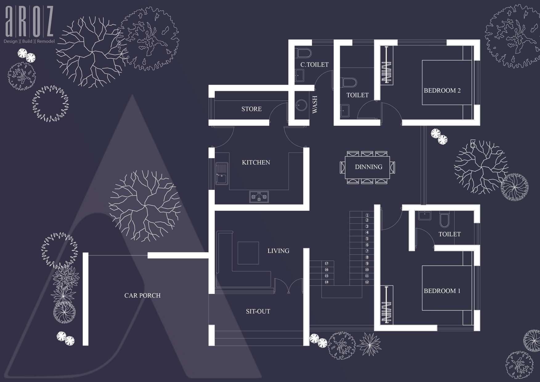 living area, an open dining zone, a sleek modular kitchen with an attached store, and two well-appointed