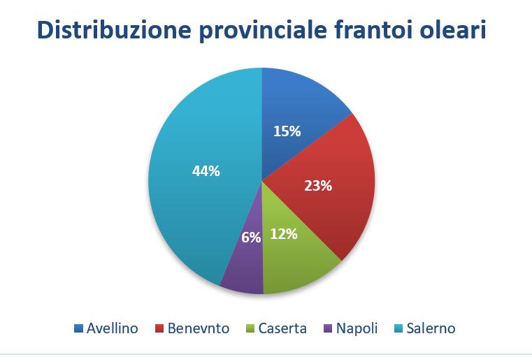 delle acque ed effetti dannosi sull’uomo, sugli animali e sulla vegetazione. In Regione Campania ci sono circa 400 frantoi, distribuiti principalmente nelle province di Salerno (44%) e Benevento (23%). Nel 2021 sono stati censiti 394 frantoi oleari, concentrati principalmente nella provincia di Salerno (172 aziende) e nella provincia di Benevento (89 aziende), cui seguono le province di Avellino con 58 aziende, Caserta, con 48 aziende, e Napoli con 25 aziende. La zootecnia campana, invece, si caratterizza per l'elevato numero di capi bufalini che si concentrano principalmente nelle province di Salerno e Caserta. Nel 2021 in regione Campania sono stati censiti 37431 allevamenti zootecnici, concentrati principalmente nella provincia di Salerno (12110 aziende) e nella