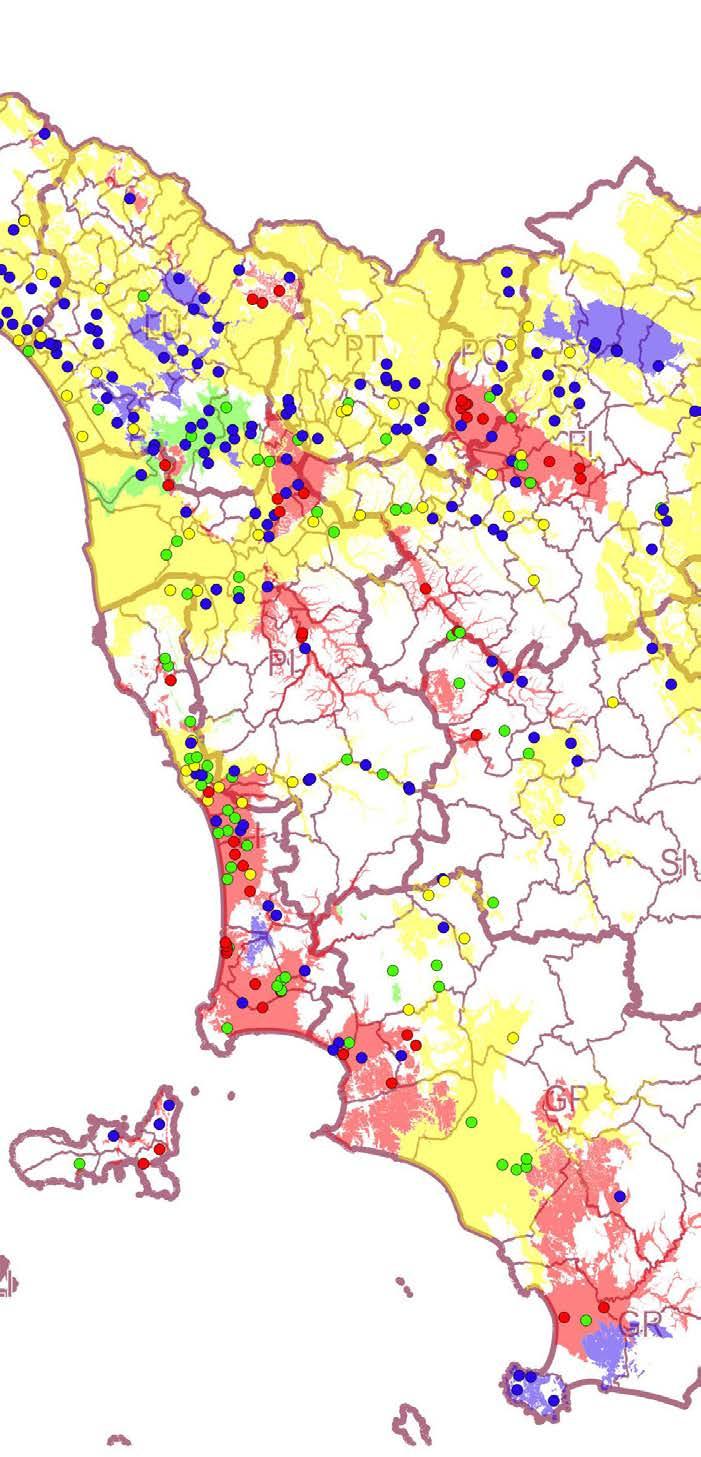 Nel dettaglio, si confermano tra gli stati scarsi dei corpi idrici a rischio varie situazioni riconducibili a contaminazioni antropiche di tipo urbano e/o industriale (Firenze 11ar011, Prato 11ar012), contaminazioni antropiche di tipo agricolo (falda profonda Chiana 11ar030-1, costiero tra Cecina e San Vincenzo 32ct010, terrazzo di San Vincenzo 32ct021) ed alterazioni antropiche del fondo naturale possibilmente originate da stress quantitativi (falda profonda Chiana 11ar030-1, Valdelsa 11ar060, Piana del Cornia 32CT020, Pianure Elbane 32CT090).