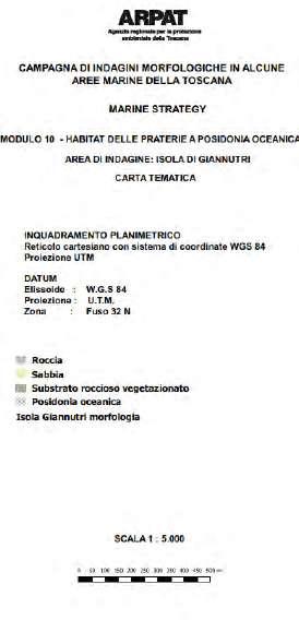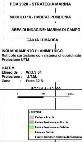 • tipo di substrato (roccia, sabbia, matte, misto), ricoprimento (percentuale di substrato ricoperto dalle piante di P. oceanica o di matte morta) e continuità della prateria;