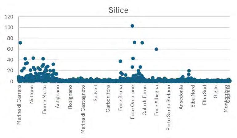 diminuzione in almeno 3 corpi idrici (Costa pisana, Costa del Cecina e Costa dell’Albegna) il mercurio appare anche in aumento in Costa dell’Uccellina e nelle Isole minori (Giglio) dell’Arcipelago toscano;