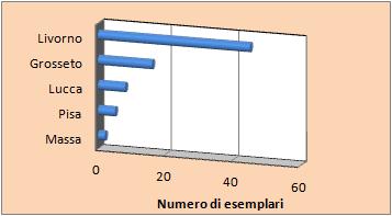 Figura 2.3 – Frequenza degli spiaggiamenti di cetacei per provincia in Toscana nel 2021