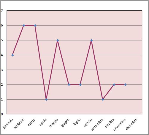 Figura 2.2 – Distribuzione degli spiaggiamenti di cetacei nell’arco dell’anno in Toscana (anno 2021)