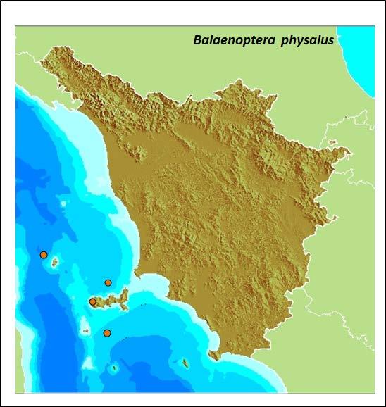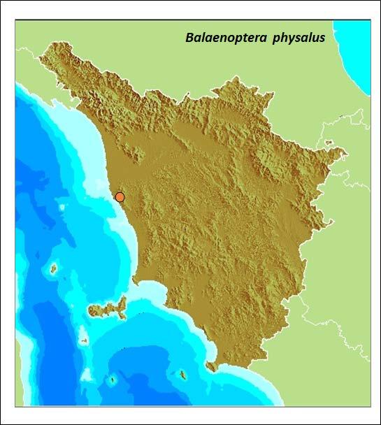 Nel 2022, complessivamente, si sono registrati 16 eventi di spiaggiamenti lungo le coste toscane. Le specie coinvolte sono state solo tre, stenella striata (Stenella coeruleoalba), tursiope (Tursiops truncatus) e balenottera comune (Balaenoptera physalus) (Tab. 2.1).