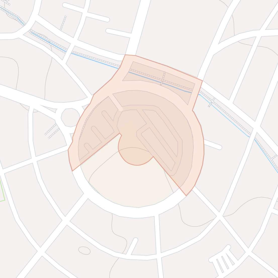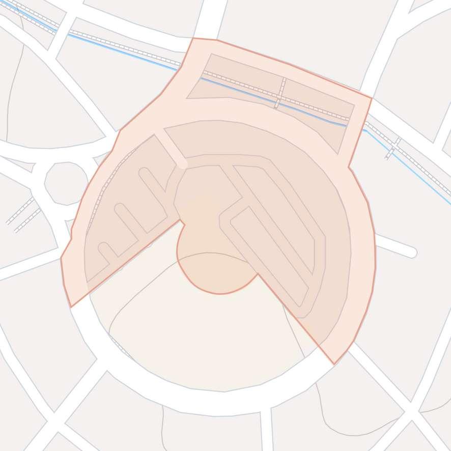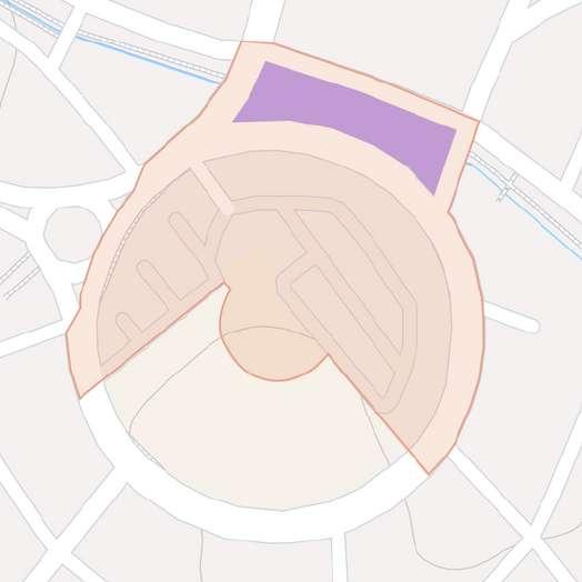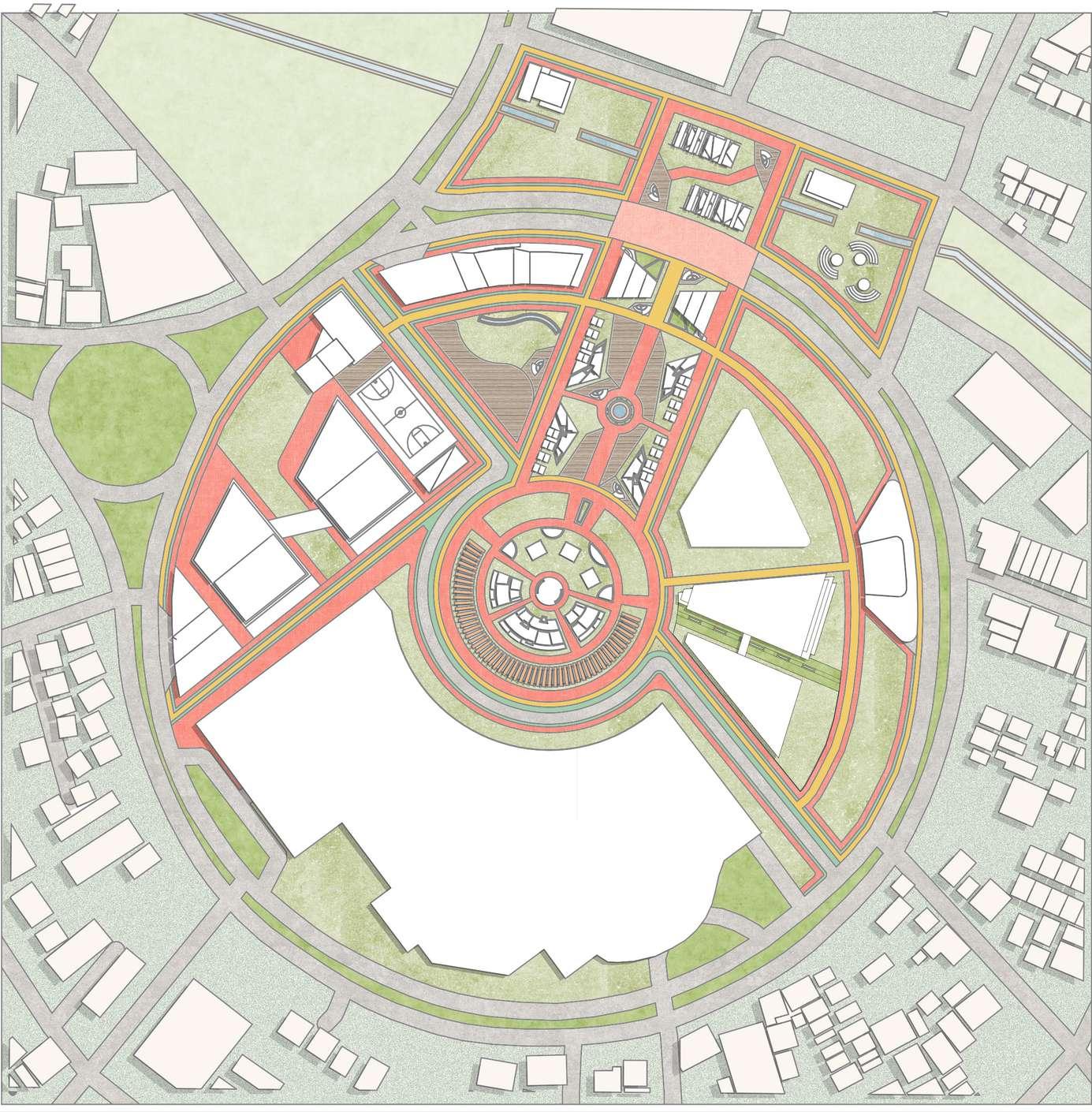 Adjacent public zones where people can easily disperse from point to point Road intersections and pedestrian lanes are visible around the vicinity.