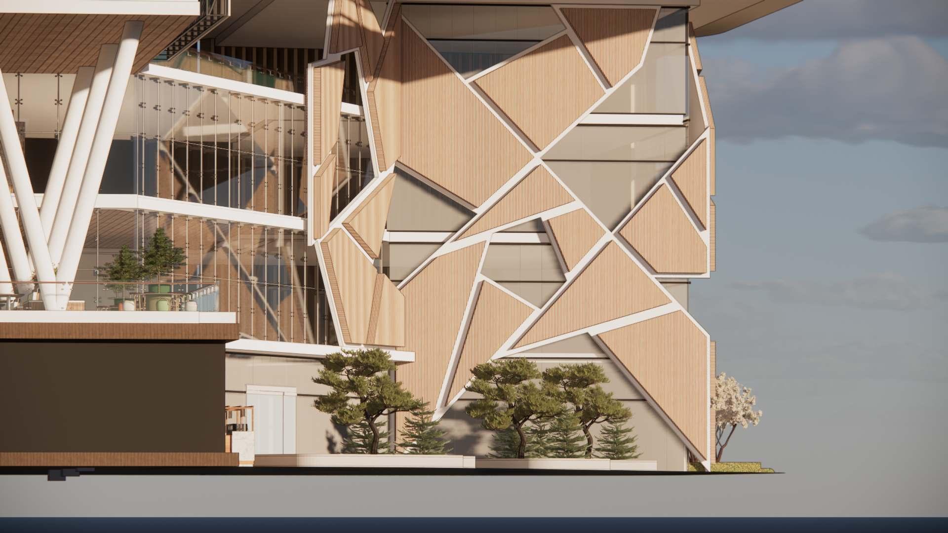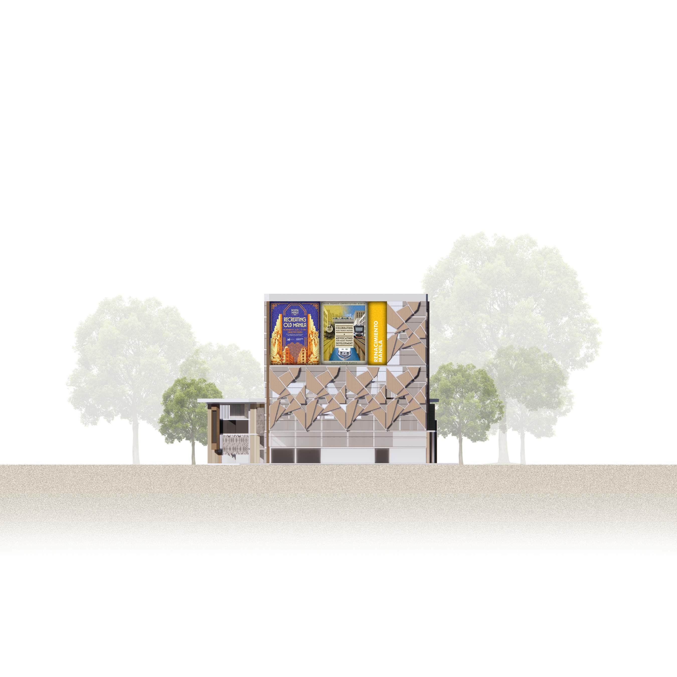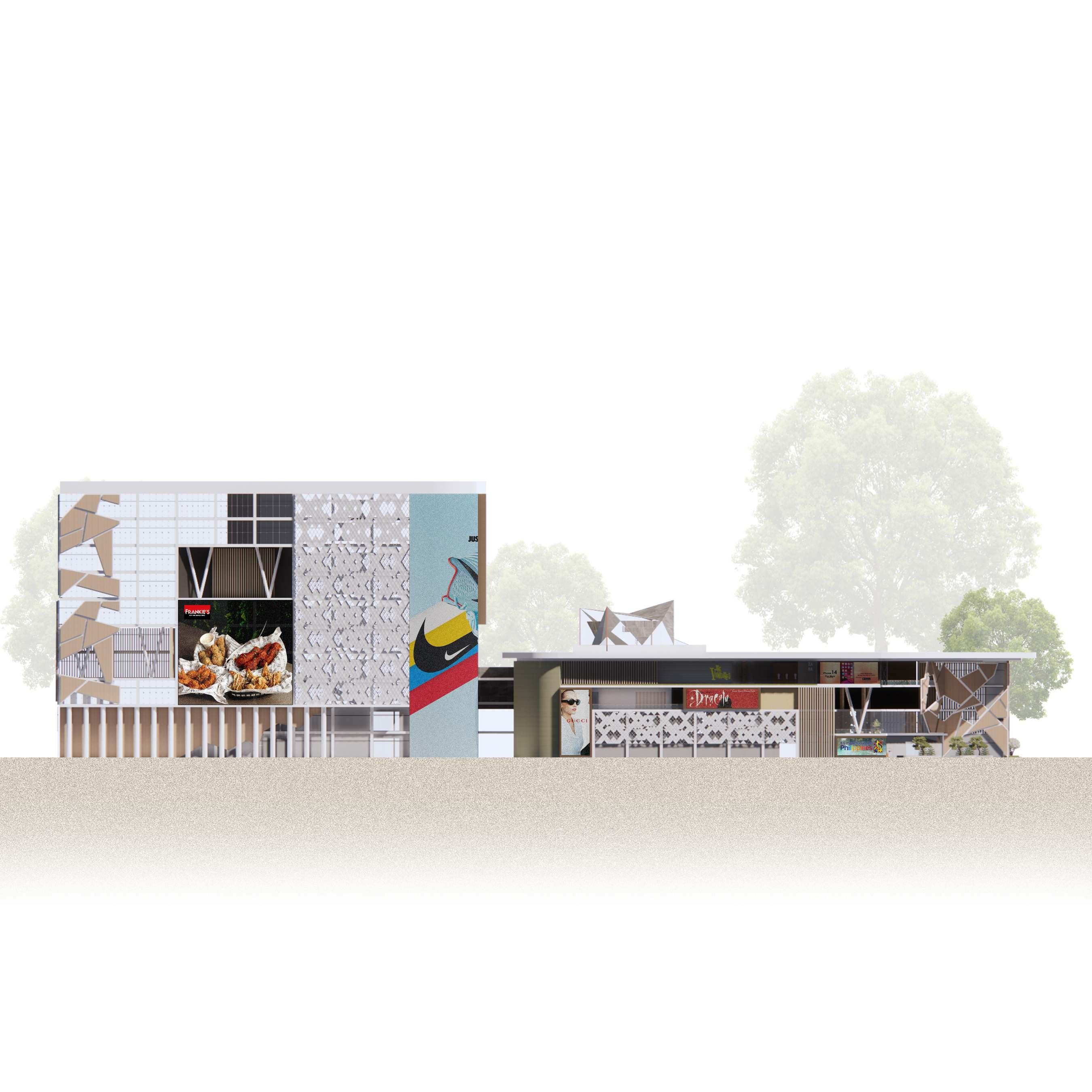 Half of the facade will be a space for local brand advertisements promoting to support local products that our country can offer. Since Filipinos are known to be a religious race, in the commercial building' rooftop, the designers provided a space for church in order for people to not need to go outside the community to express their faiths.