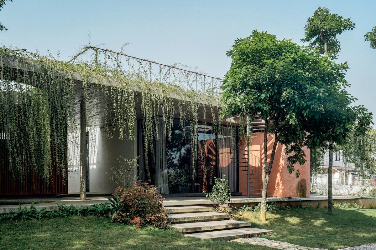 Căn thự ngập tràn nhựa sống với những mảng xanh bao quanh, không gian mở thoáng ãng, tối giản theo phong cách ương ại