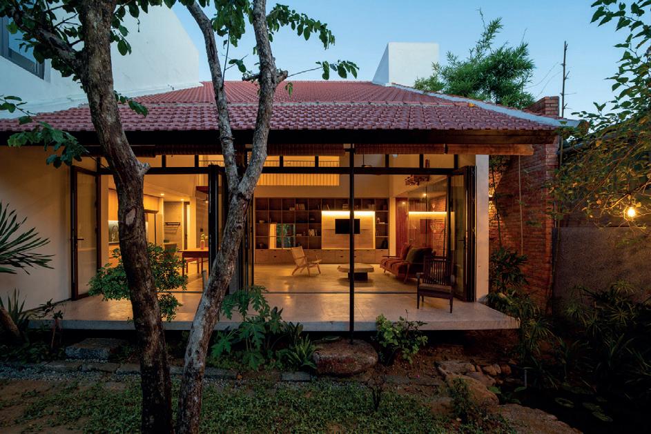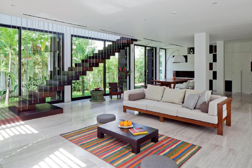06 Ý tưởng về không gian nhiều lớp, dàn trải dần, tạo ra chiều sâu về không gian cho ngôi nhà. Toàn bộ không gian sinh hoạt chính ược mở ra thiên nhiên thông qua các khoảng hiên dài, nhờ vậy mà ánh sáng tự nhiên gián tiếp i vào không gian một cách vừa phải và dễ chịu