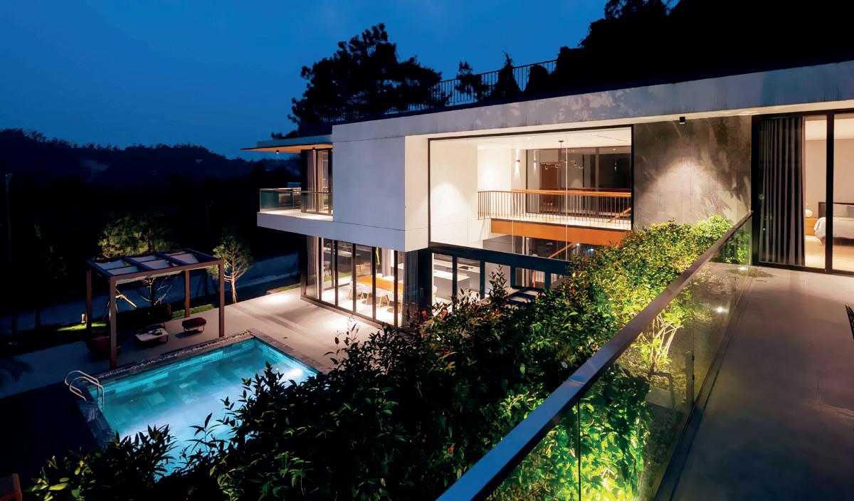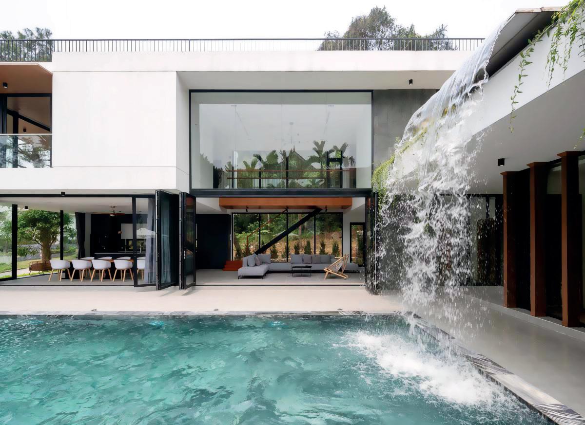 Biệt thự với thác nước giữa ồi thông