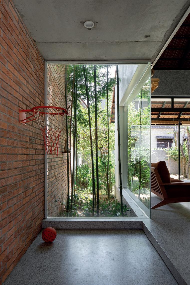 Bên trong, các không gian chức năng chính ược bố trí ở hướng gió chính của ngôi nhà Vật liệu, nội thất và ồ trang trí cũng ược tiết chế nhằm em tới cảm giác sáng sủa, gọn gàng. 08