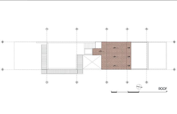 Nhằm tận dụng tối a thiên nhiên xung quanh, nhóm thiết kế tạo ra khoảng hiên lớn bằng cách ặt lên công trình phần mái mỏng, bay ua suốt chiều dài nhà. Bên dưới khoảng hiên này là những mảnh sân, vườn.
