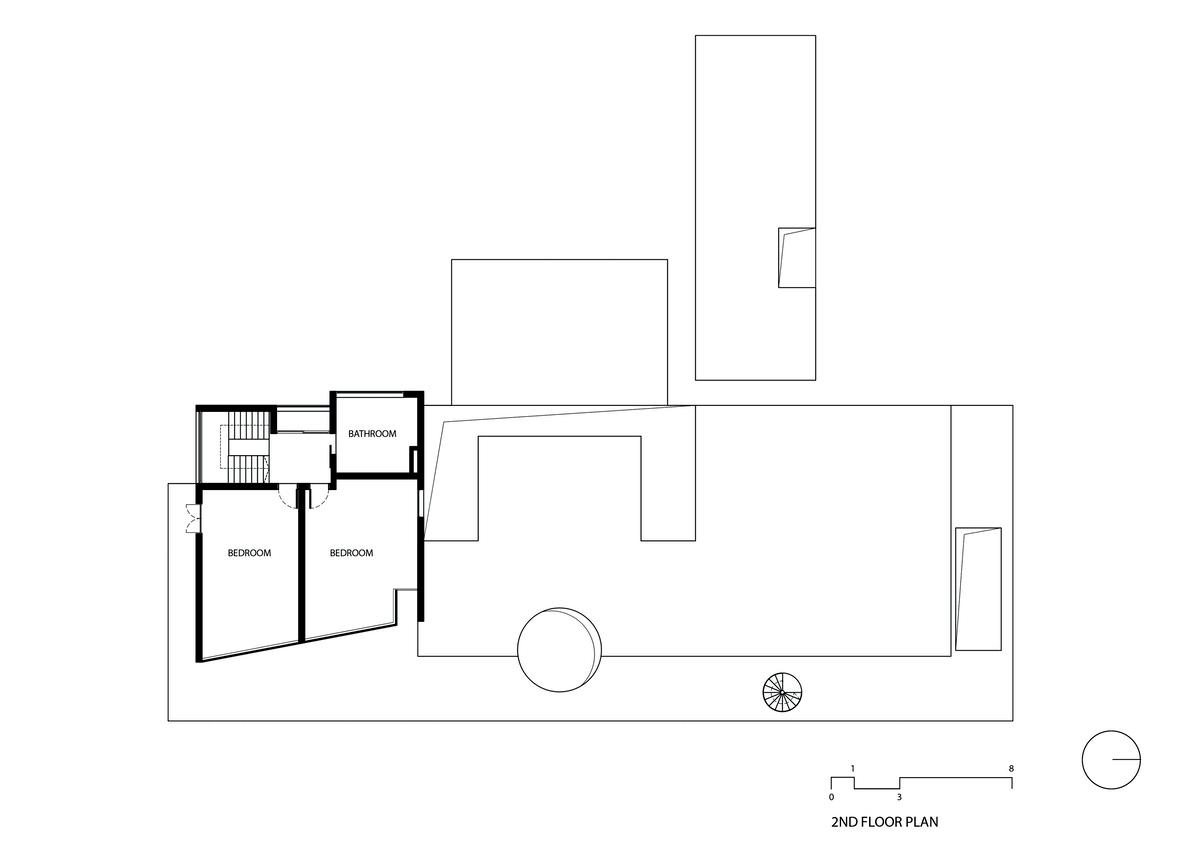 Mặt ất ược chia thành các khu vực khác nhau có thể ược mở hoặc óng ể tối a hóa dòng chảy, trong khi luôn duy trì các kết nối thị giác mạnh mẽ giữa các không gian. Khi cửa mở, phần phía sau của ngôi nhà một cách hiệu quả có thể trở thành một không gian mở duy nhất - mặc dù ược iều chế bởi các khu vực nhỏ hơn khác nhau bên trong nó. Một giếng trời hướng nhiều ánh sáng mặt trời hơn vào phòng khách.