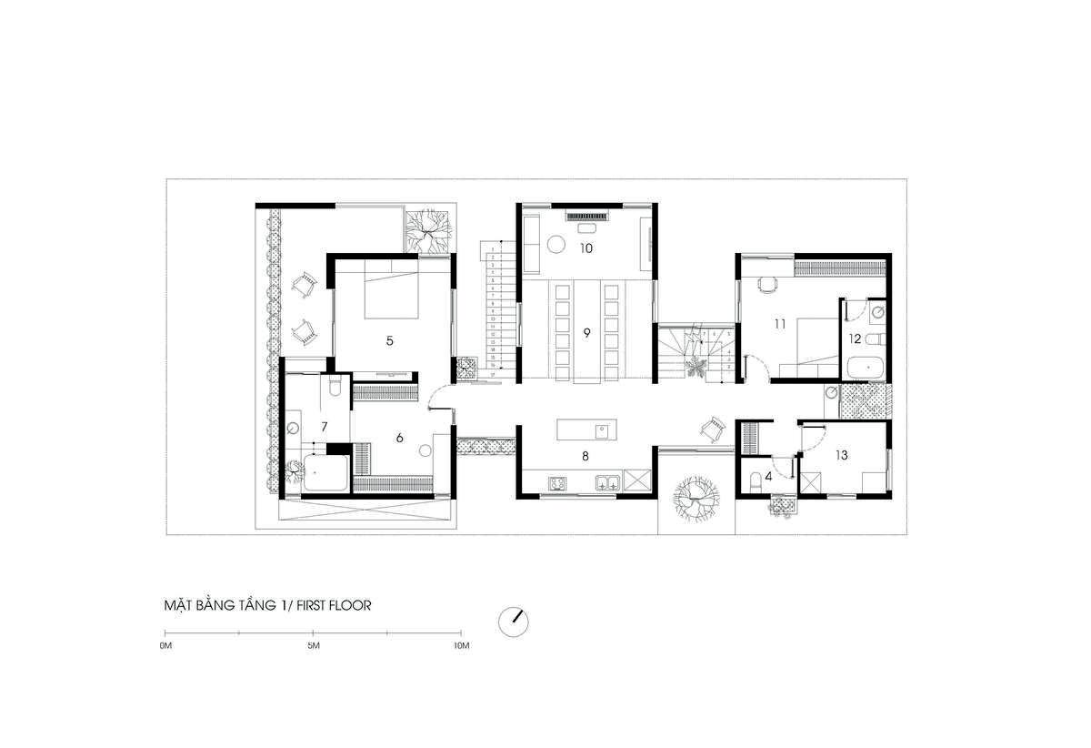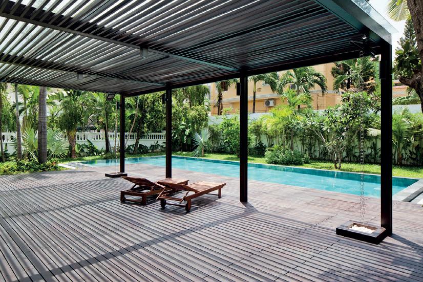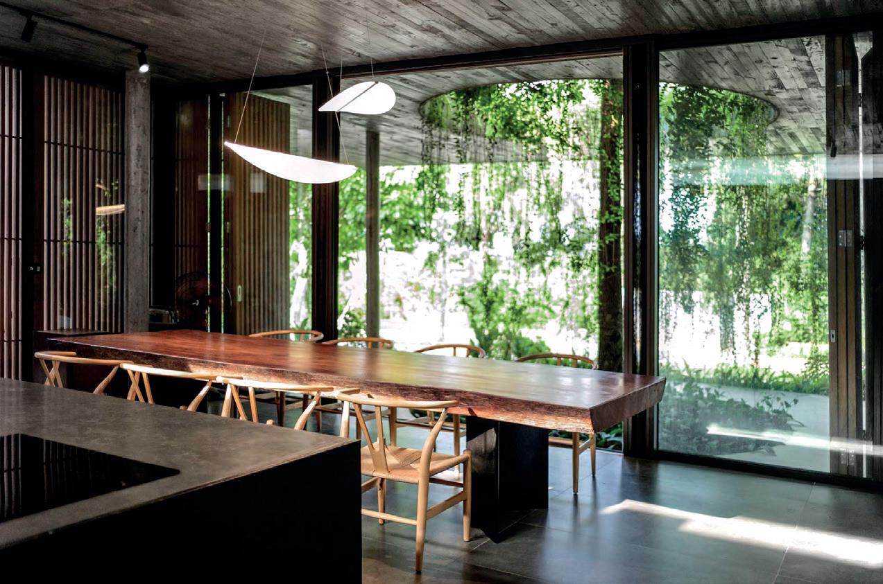 06 Ý tưởng về không gian nhiều lớp, dàn trải dần, tạo ra chiều sâu về không gian cho ngôi nhà. Toàn bộ không gian sinh hoạt chính ược mở ra thiên nhiên thông qua các khoảng hiên dài, nhờ vậy mà ánh sáng tự nhiên gián tiếp i vào không gian một cách vừa phải và dễ chịu