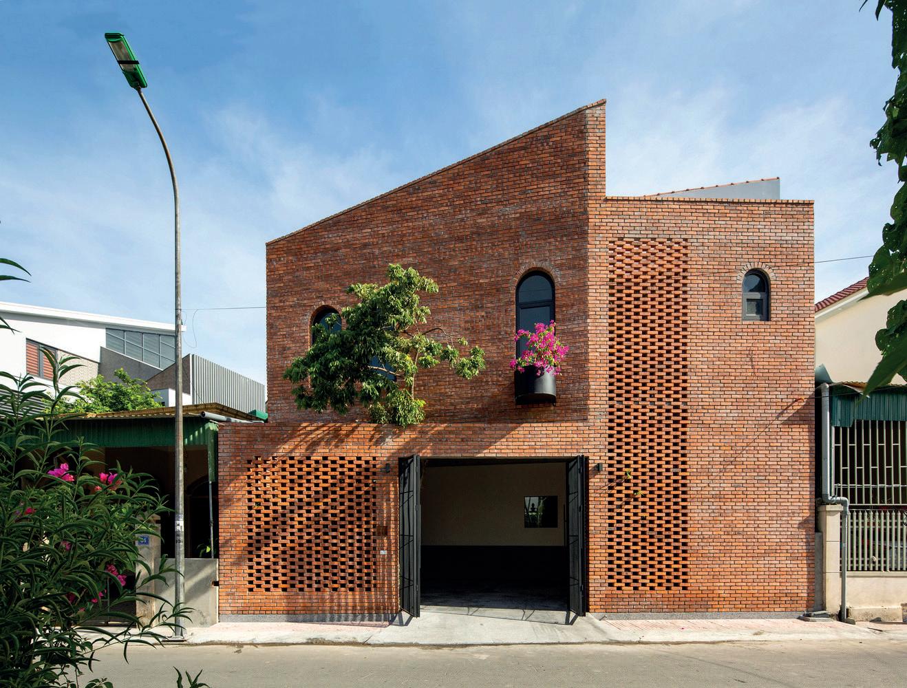 Ngôi nhà là sự kết hợp hài hòa của kiến trúc truyền thống và hiện ại. Mặt tiền ngôi nhà mang nét phóng khoáng, nhẹ nhàng của kiến trúc hiện ại, nhưng âu ó vẫn phảng phất nét truyền thống với mái ngói mũi hài, gạch thông gió ất nung, chi tiết cửa gỗ cong… ược cách iệu một cách vừa phải ể tránh sự nhàm chán nhưng vẫn phải tạo nên một tổng thể hài hòa, có sự chuyển tiếp khéo léo, nhẹ nhàng. Việc kết hợp hợp lý các ngôn ngữ kiến trúc ối xứng và bất ối xứng giúp ngôi nhà tăng thêm nét ộc áo, cuốn hút và luôn nổi bật ngay từ ánh nhìn ầu tiên.