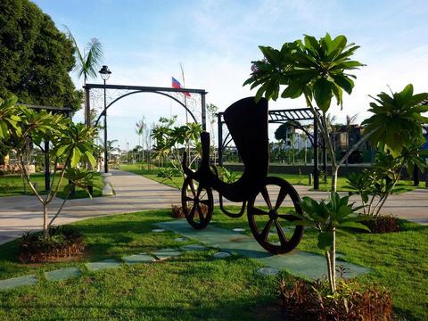 O parque tem vários monumentos de homenagem à história de Manaus. Quem segue até o Centro Cultural Palácio Rio Negro encontra alguns monumentos de metais. São imagens de personagens da época da borracha e bondes, meio de transporte do início do século XX em Manaus.