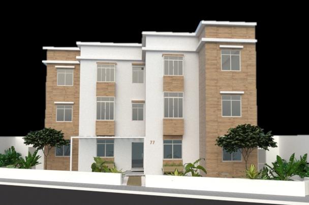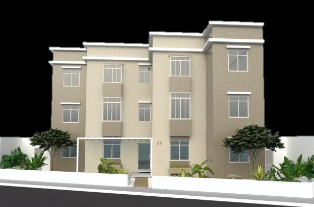 Por se tratar de um prédio mais baixo que os do entorno optamos pela paginação no sentido vertical com o intuito de alongar esta fachada Seguindo a orientação dos clientes a primeira opção foi idealizada com a aplicação de pastilhas em tons de marrom e na segunda opção sugerimos o uso de outras texturas.