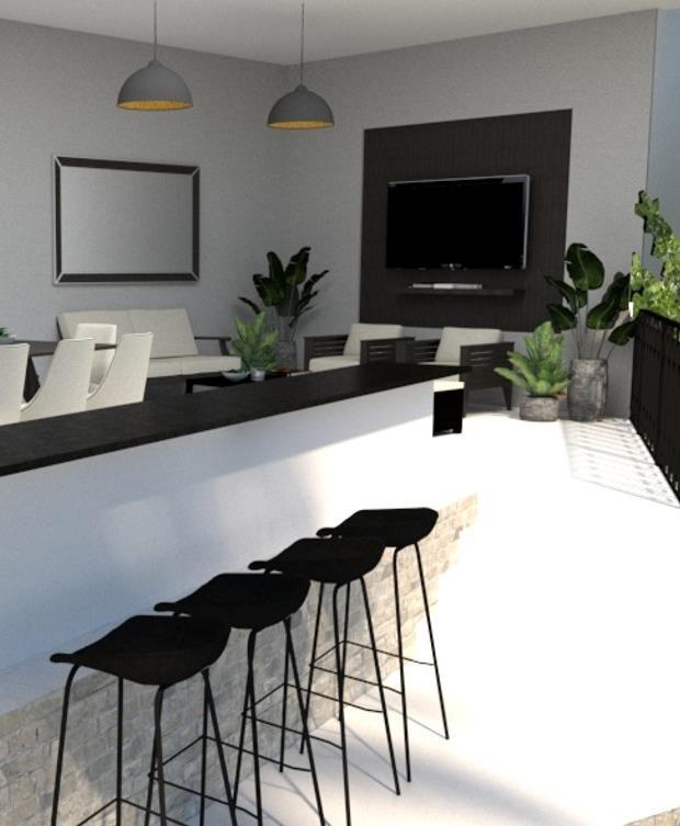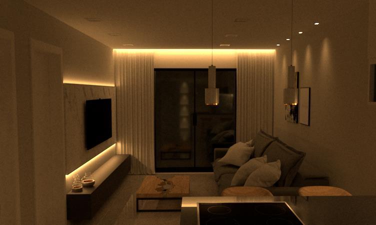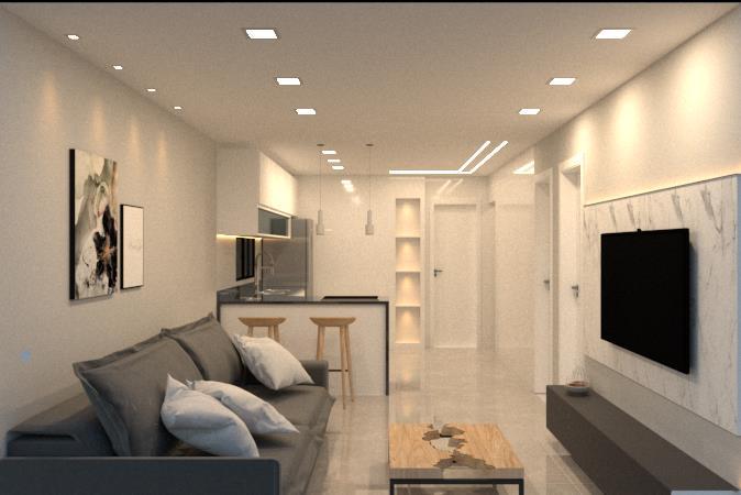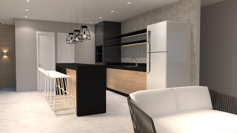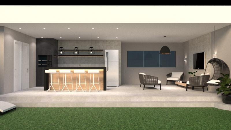 Projeto e Imagens em 3D para terraço A área livre com grama artificial foi um pedido especial do nosso cliente.