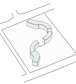 Se traza el eje de accesibilidad marcando la orientación del volumen y la conexión con el planteamiento urbano