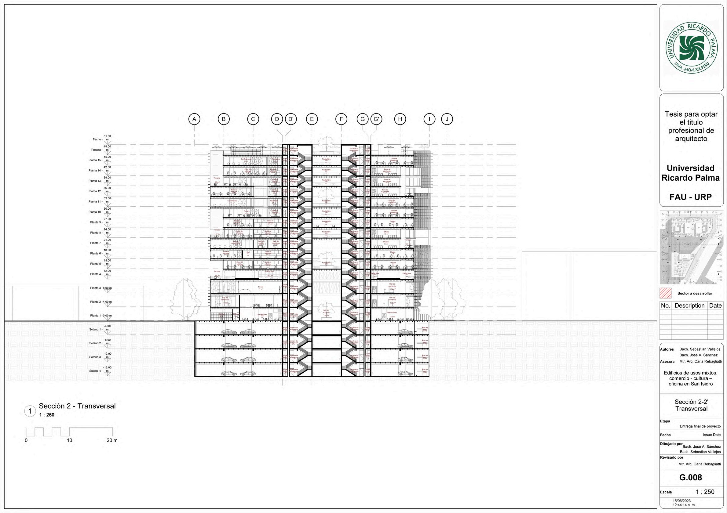To design a mixed-use building: Commerce - Culture - Offices in the district of San Isidro, Lima, that manages to satisfy the growing demands for work spaces, likewise, that manages to enhance and revitalize the area, generating a greater flow of people and activities outside working hours.