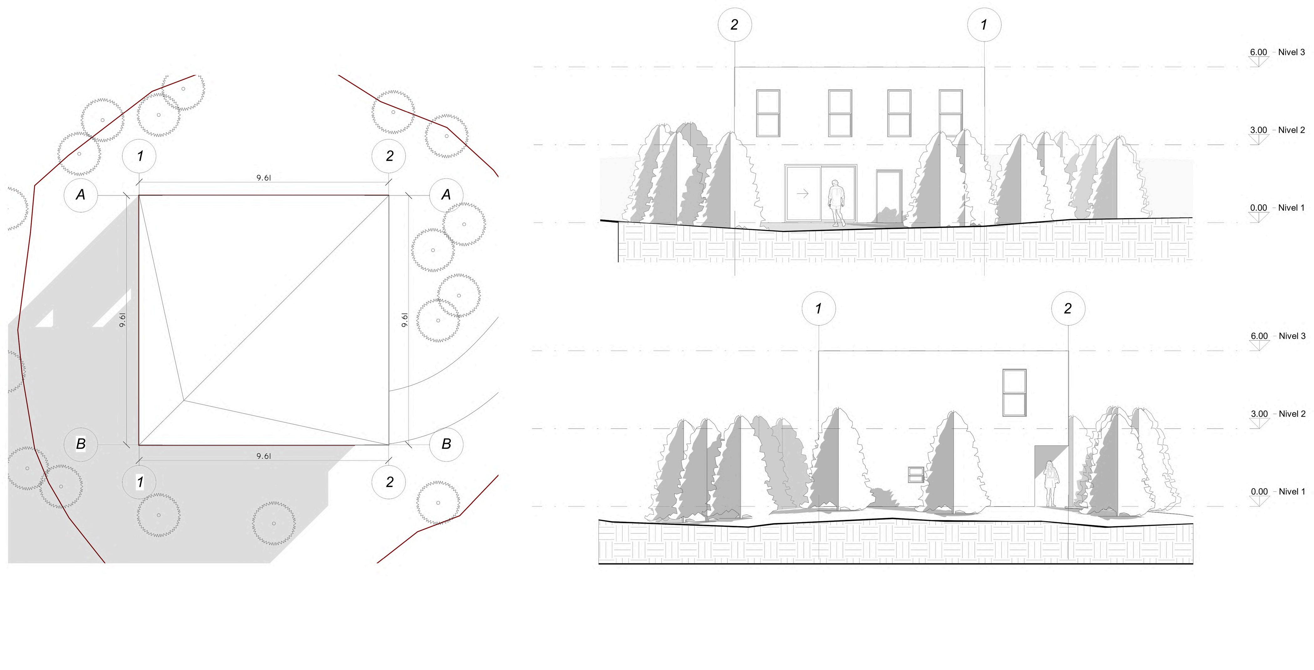 The topography allowed us to find the ideal location for the project and design the structure. A portico system was proposed considering the location and soil resistance.