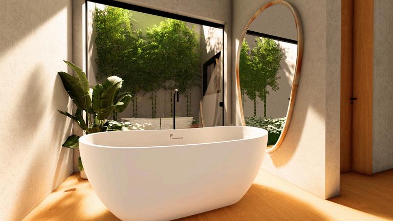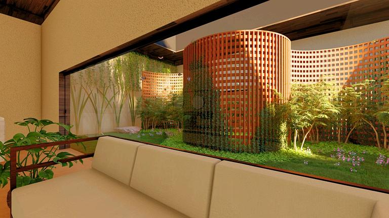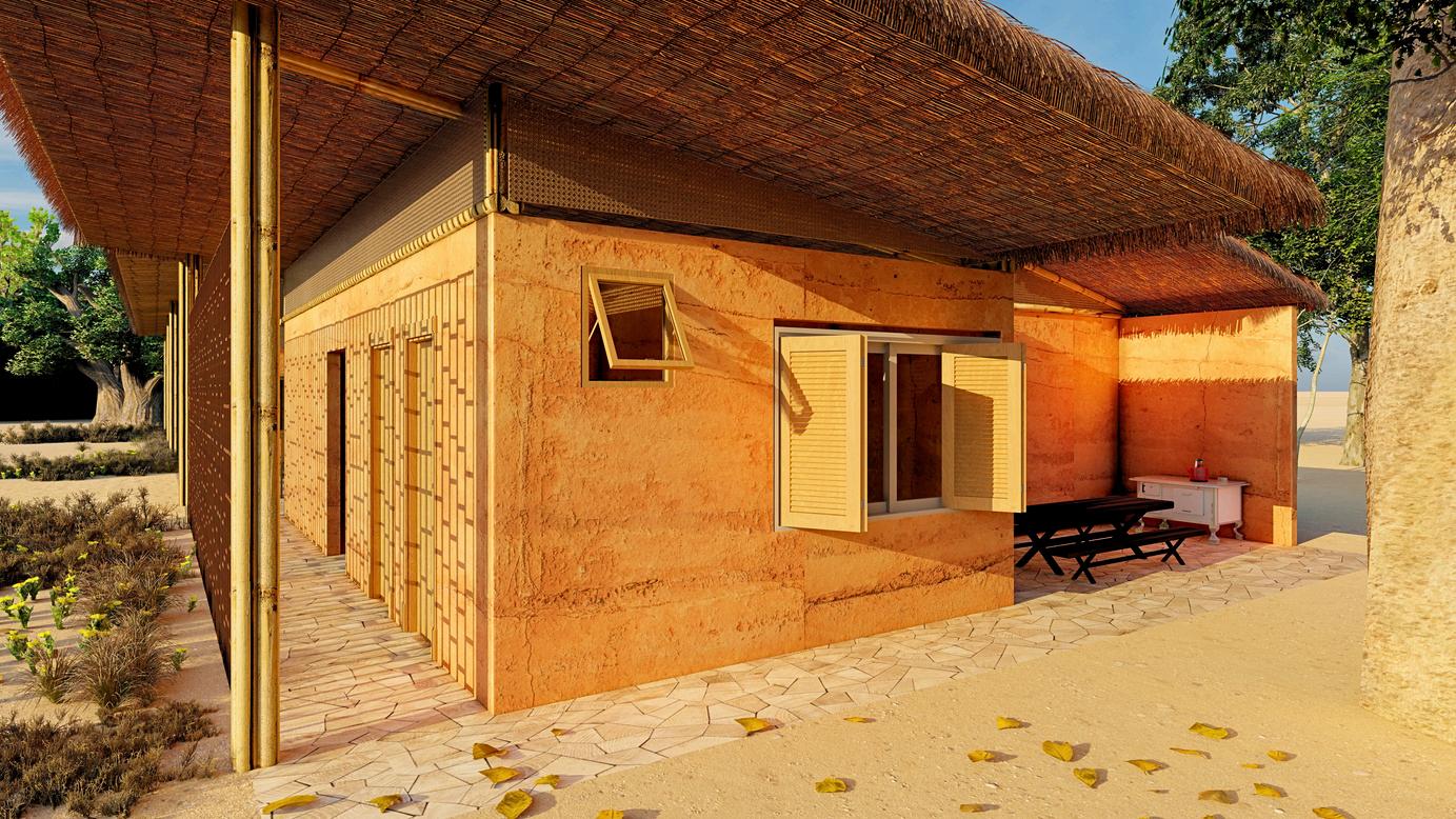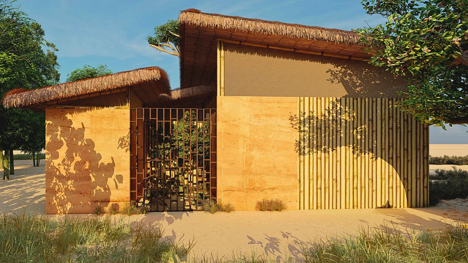 The use of materials such as rammed earth and bamboo contributes to a better delineation of spaces ”