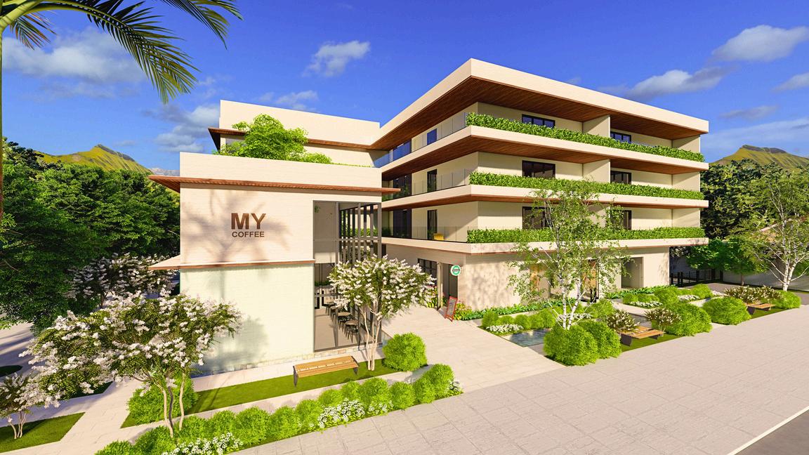 e projeto foi desenvolvido de forma ividual e envolve a concepção de um fício de uso misto, com áreas residenciais comerciais O paisagismo desempenhou papel essencial na criação de um biente harmonioso e funcional O meiro pavimento é dedicado ao uso comercial, enquanto os andares superiores (primeiro, segundo e terceiro) são voltados para residências Na cobertura, foi planejado um espaço de lazer completo, com piscina e academia Para garantir maior privacidade e eficiência, os acessos para as áreas comerciais e residenciais foram separados.