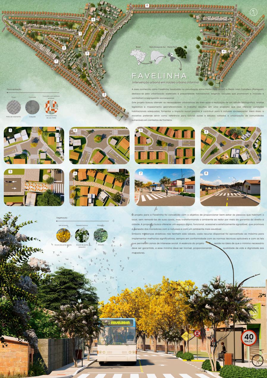 Projeto desenvolvido como Trabalho de Conclusão de Curso, intitulado: Intervenção em Núcleo Urbano Informal: O Direito à Moradia nas Cidades Gêmeas Ponta Porã (BR) e Pedro Juan Caballero (PY).