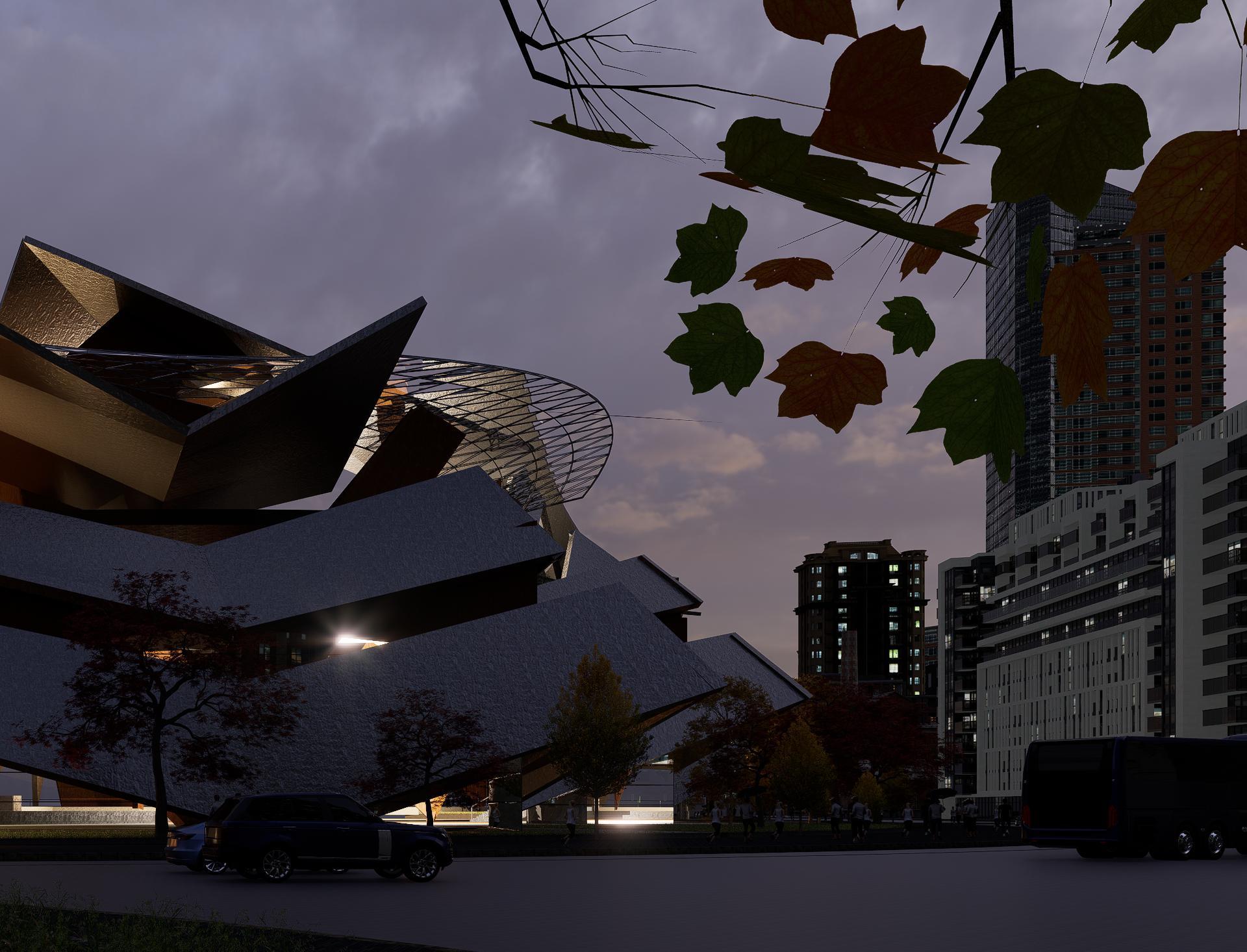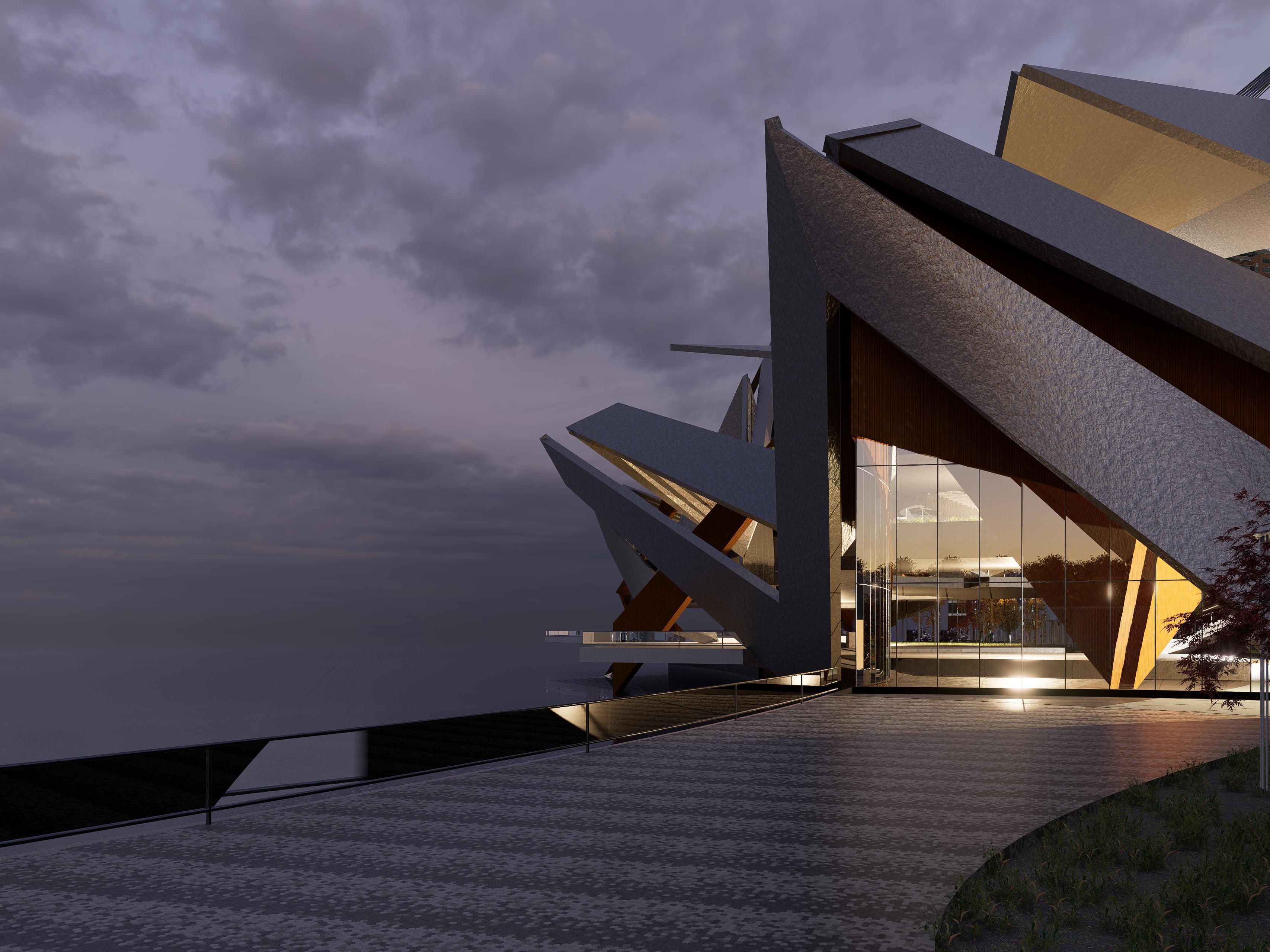 También se enfatiza la interacción y participación pública con el edificio Tanto los poseedores de entradas como el público en general pueden explorar los caminos tallados de la fachada y ascender al edificio como si atravesaran la topografía local En el vértice, los visitantes descubren un espacio de actuación exterior abierto que sirve como plataforma de observación