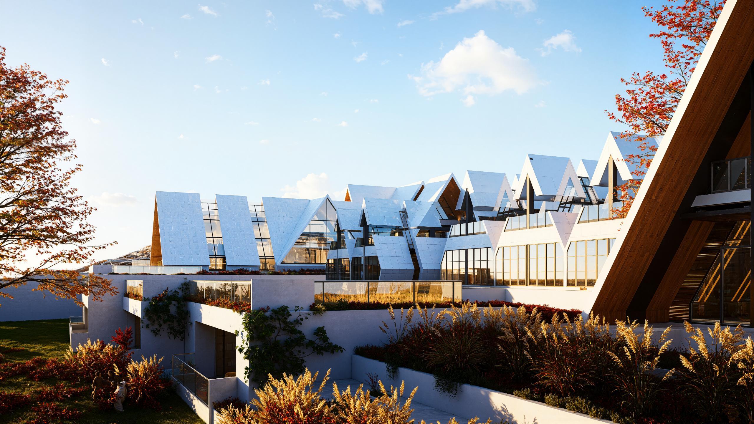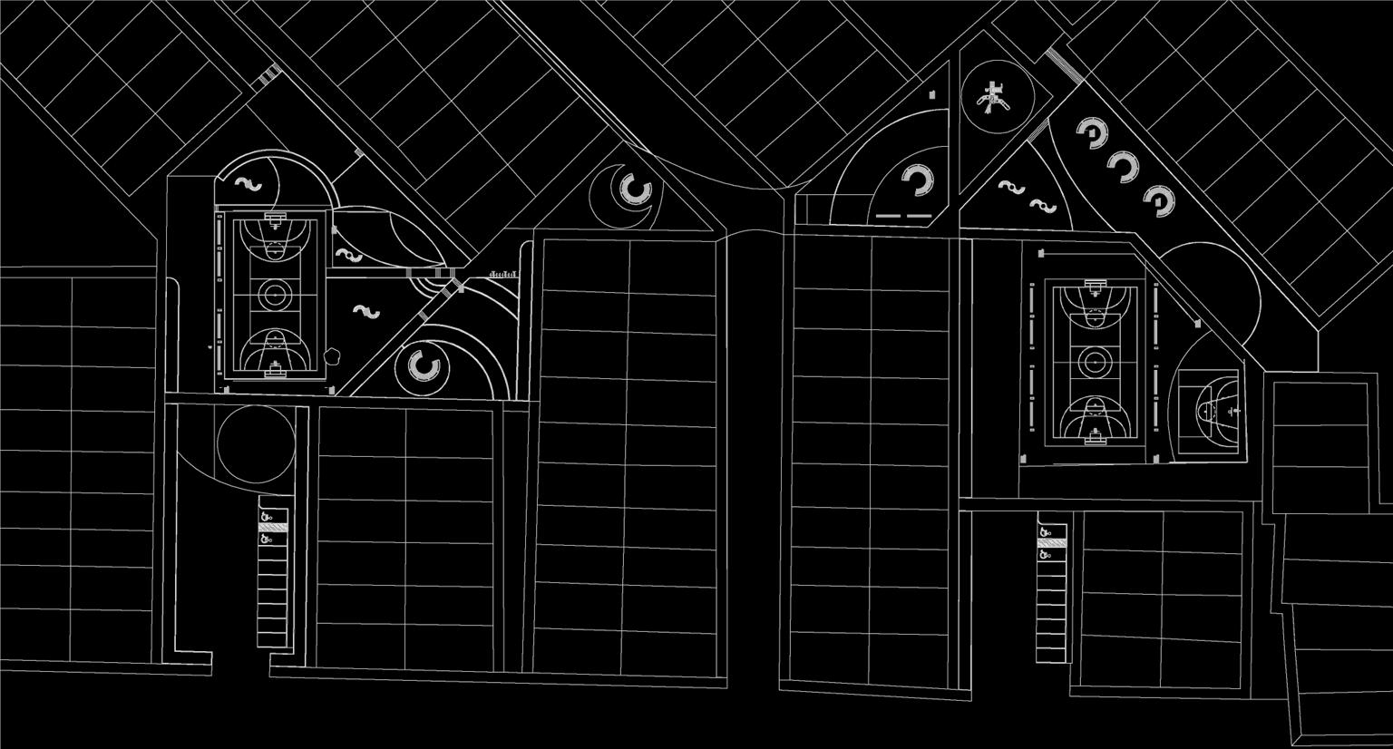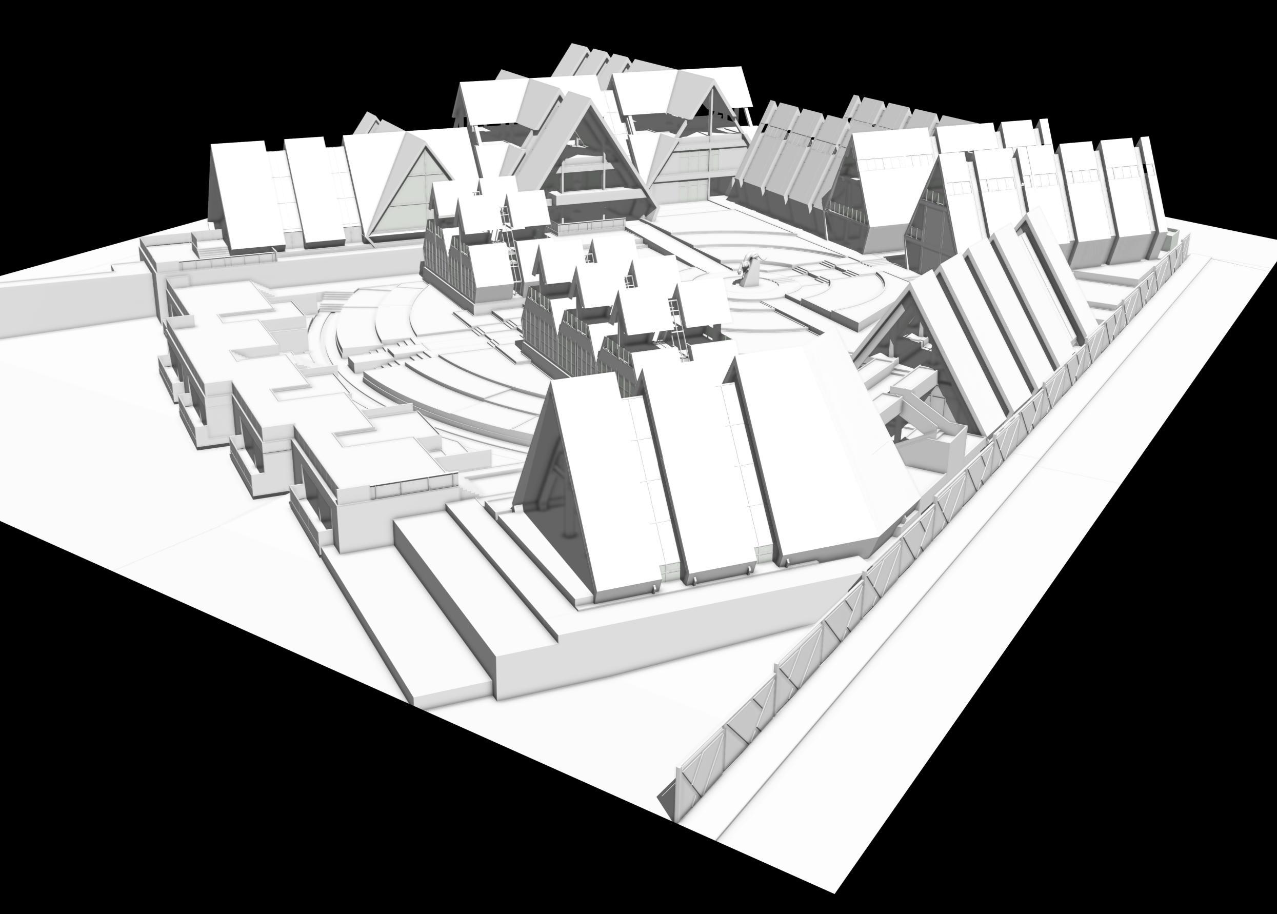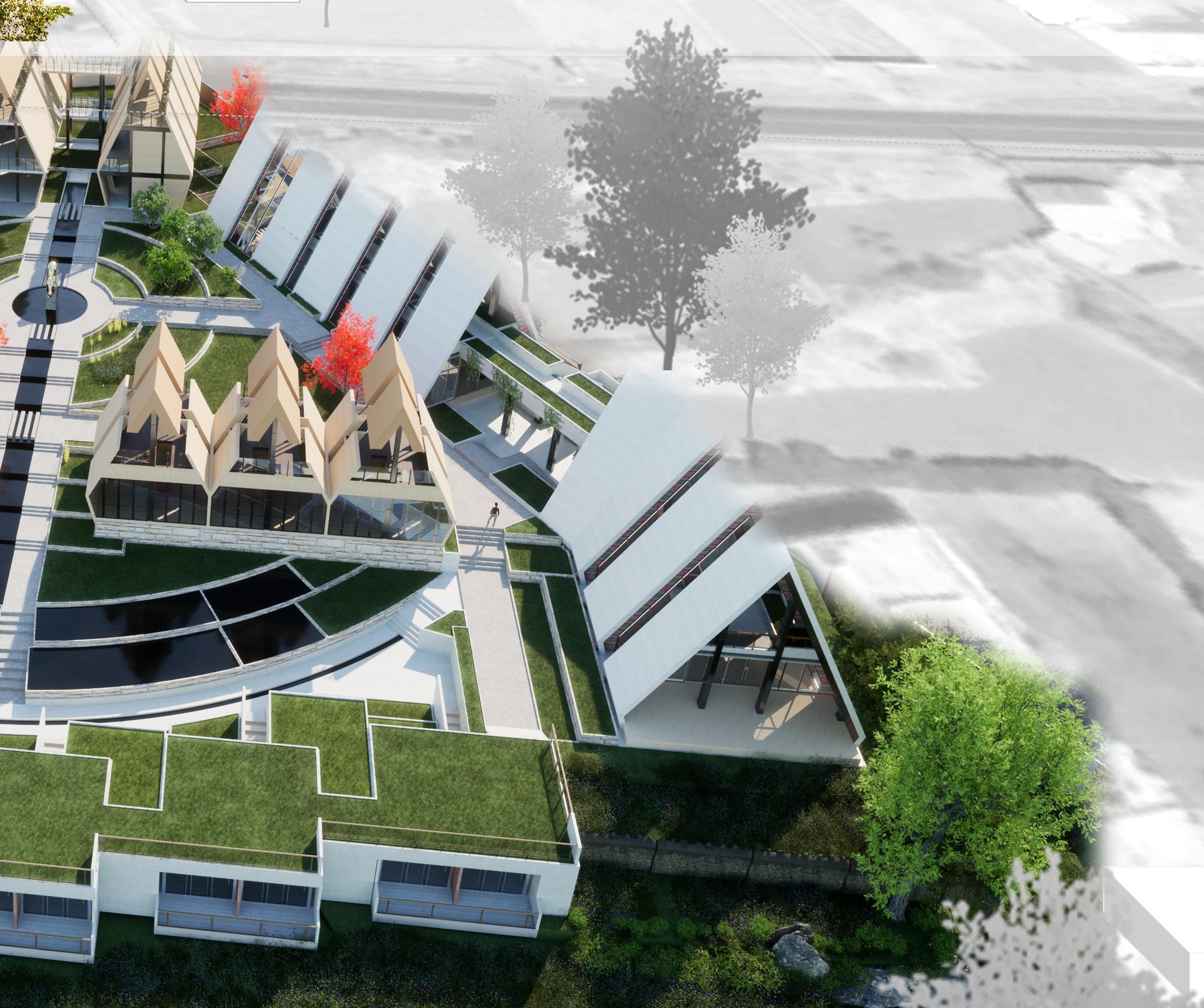 El componente formal más destacable en este proyecto es la proyección de techos a dos aguas que se sub dividen en simétricas y asimétricas, son el componente fundamental en la conceptualización y funcionabilidad del módulo inspirado de la vivienda o kancha inca, la cubierta consta con ángulos de 5565 grados de inclinación, lo cual genera una altura promedio de 12 metros